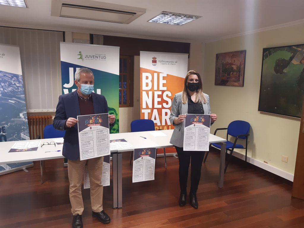 La presentación corrió a cargo del Alcalde de Laguna de Duero, Román Rodríguez de Castro y la Concejala de Juventud ,Estela Crespo.El Ayuntamiento de Laguna de Duero ha elaborado un programa alternativo de actividades durante los días de carnaval, acorde a la situación actual frente a la tercera ola de COVID-19.