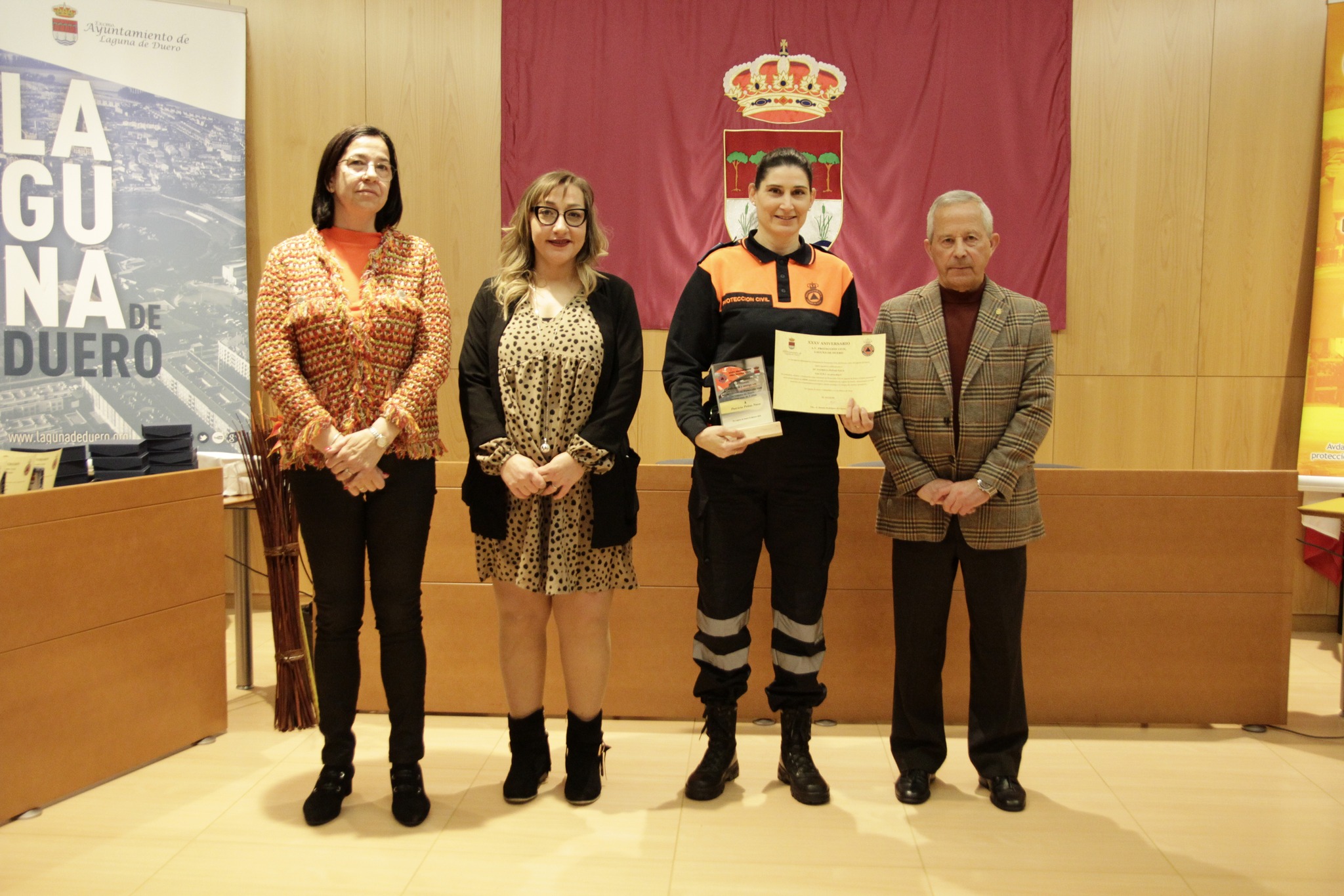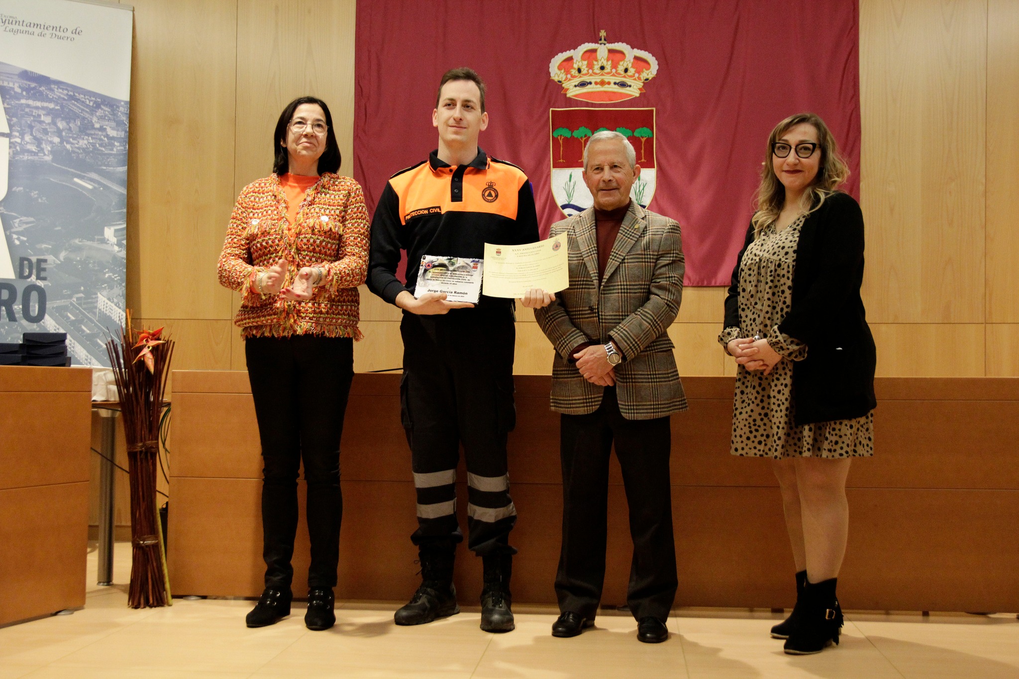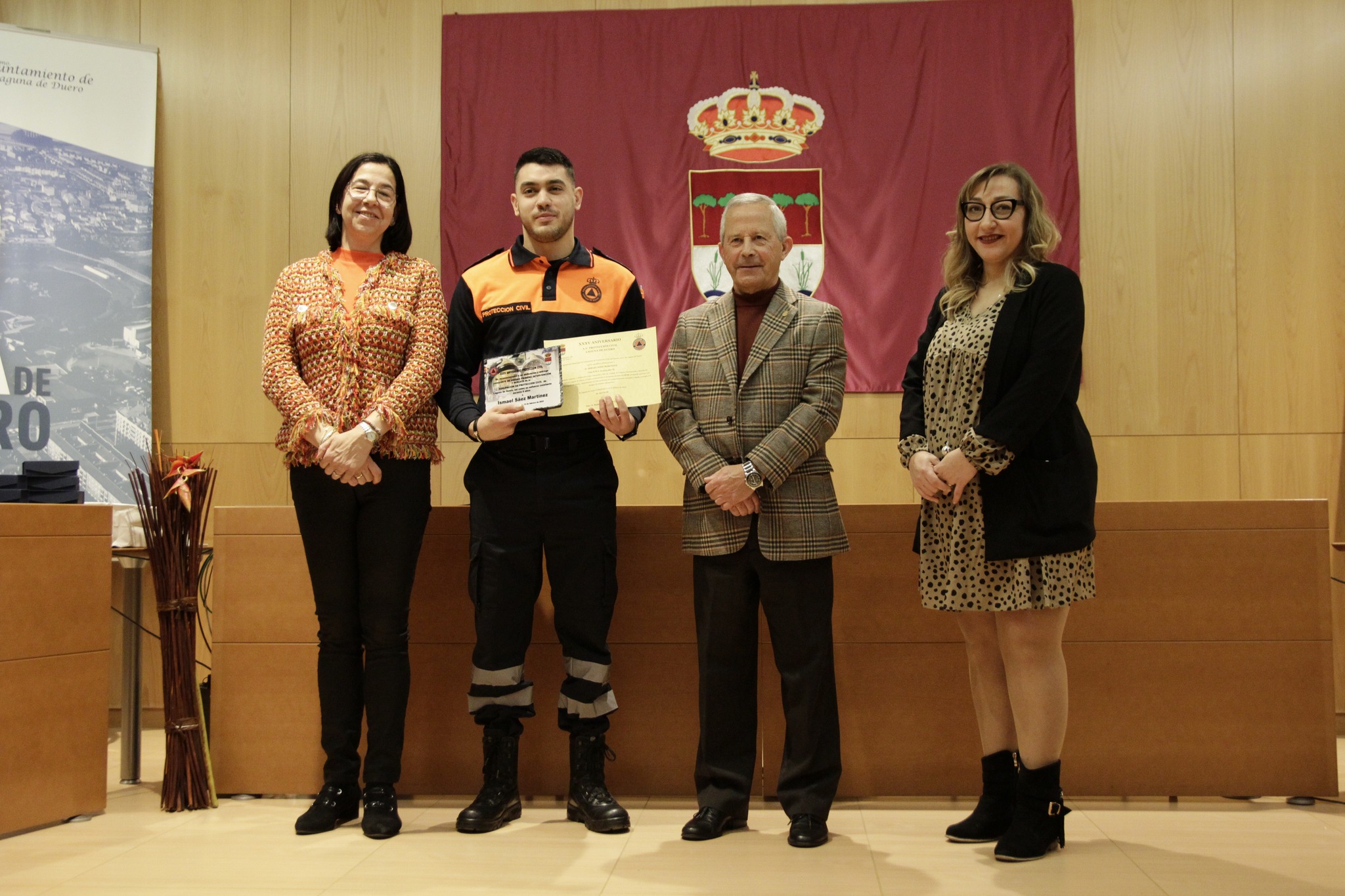 El alcalde de Laguna de Duero, Román Rodríguez de Castro, la subdelegada de Gobierno, Alicia Villar y la concejal de Seguridad Ciudadana, entregaron los galardones a todos los voluntarios de la agrupación con las trayectorias de más de 5 años: Miguel Ángel del Río Yanguas, Patricia Peñas Nava, Oscar Astorga Blanco, Javier Cánovas Hernández, David Ordoñez Morchón, Paula Vallecillo Prieto y Víctor Arranz García. De la misma manera, recogieron su reconocimiento los voluntarios con una trayectoria en Protección Civil superior a 10 años: Isabel Mateo Rodríguez, Belén Correjes de la Riva, Custodia Díaz-Hellín Ortiz , Beatriz Casorrán de Frutos y José Ignacio Astorga Blanco. Seguidamente se entregaron los reconocimientos a los voluntarios con una trayectoria de 15 años de servicio: Virginia Montegrifo San Casiano y José Rebollo Cardeñosa, 25 años.