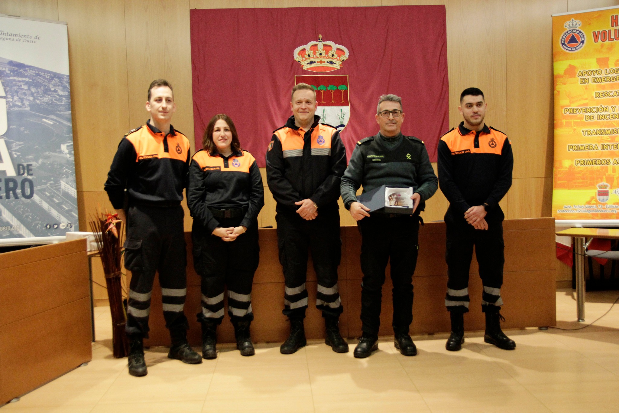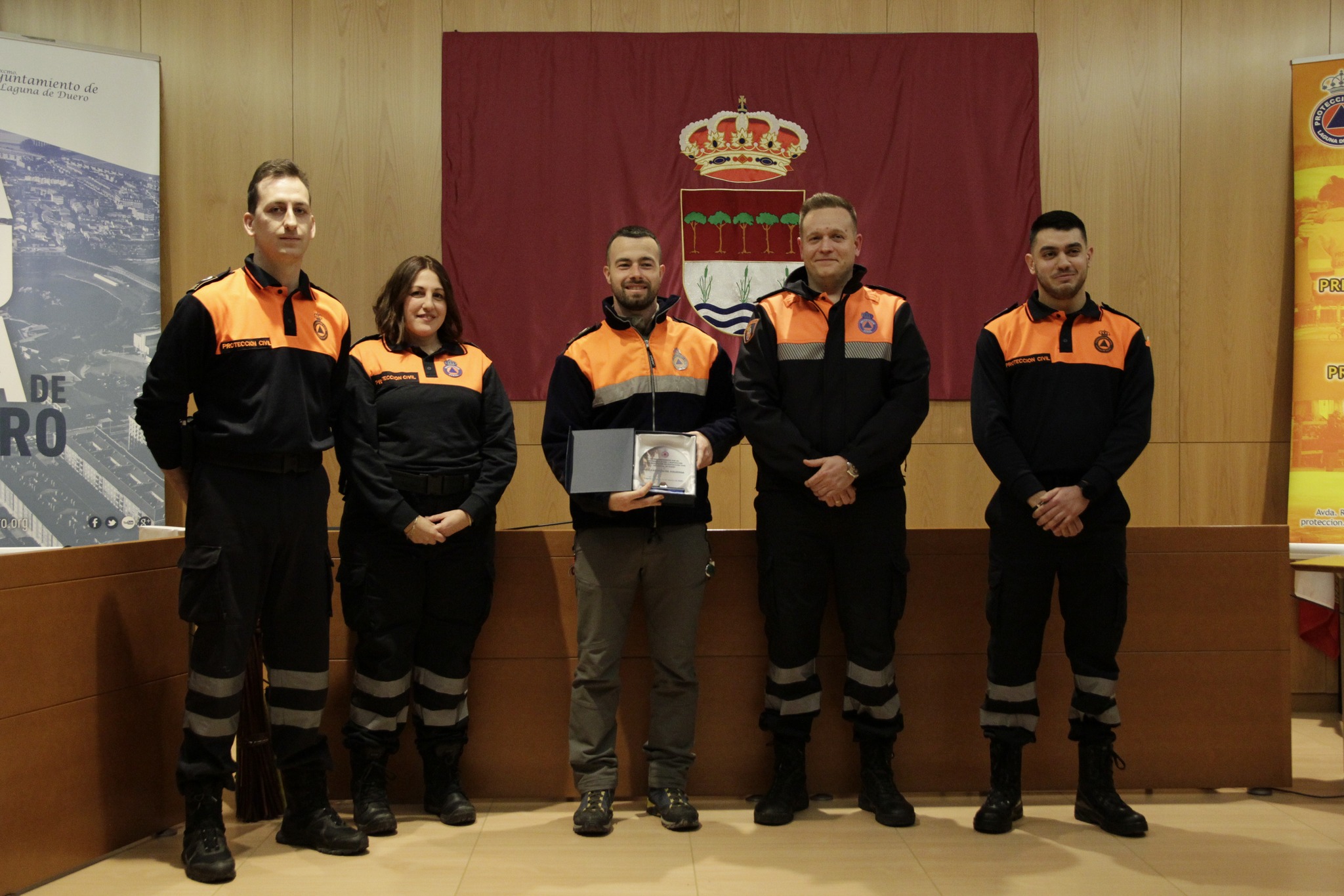 Policía Local de Laguna de Duero, por su ayuda indispensable y la coordinación perfecta desde su creación con los voluntarios de Protección Civil. Recoge el Inspector Jefe, Celso Arcos.