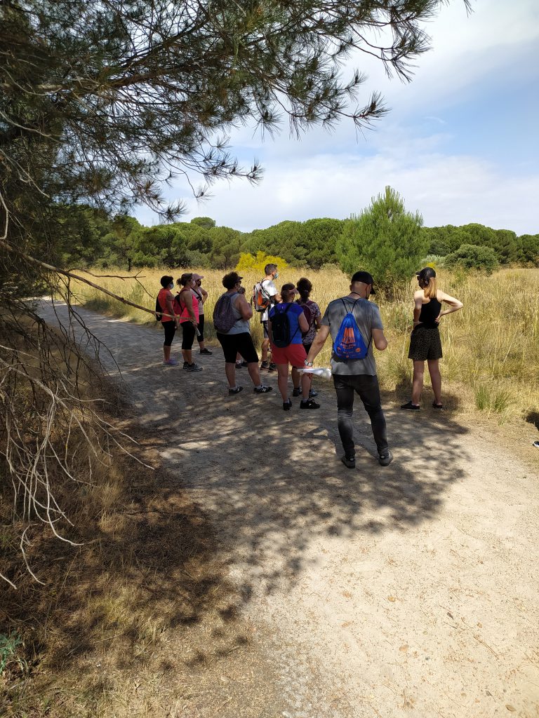 En ese momento y antes de comenzar la propia ruta se explicaron los cuatro ecosistemas anteriormente mencionados de los que consta el entorno cercano a la localidad. Una vez comenzada la ruta, y sobre todo al principio para evitar las horas posteriores de calor, y una vez nos internamos en territorio desombras, se realizaron explicaciones en torno a las distintas especies de flora y fauna que íbamos encontrando por el camino, observando aves como vencejos, aviones, pinzones, palomas torcaces e incluso un águila calzada.