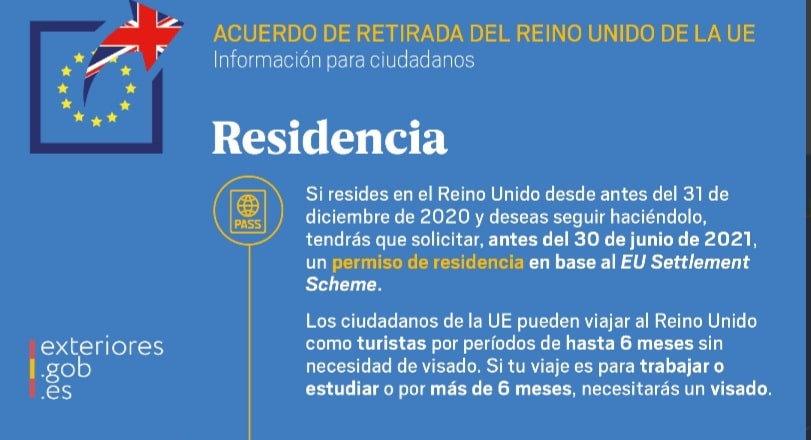A partir del 1 de enero de 2021,todos los ciudadanos de la UE y sus familiares, incluidos también los menores,que hayan residido en el Reino Unido antes del 31 de diciembre de 2020,deben solicitar un permiso de residencia como establece el EU Settlement Scheme (EUSS) emitido por el Ministerio de Interior Británico.