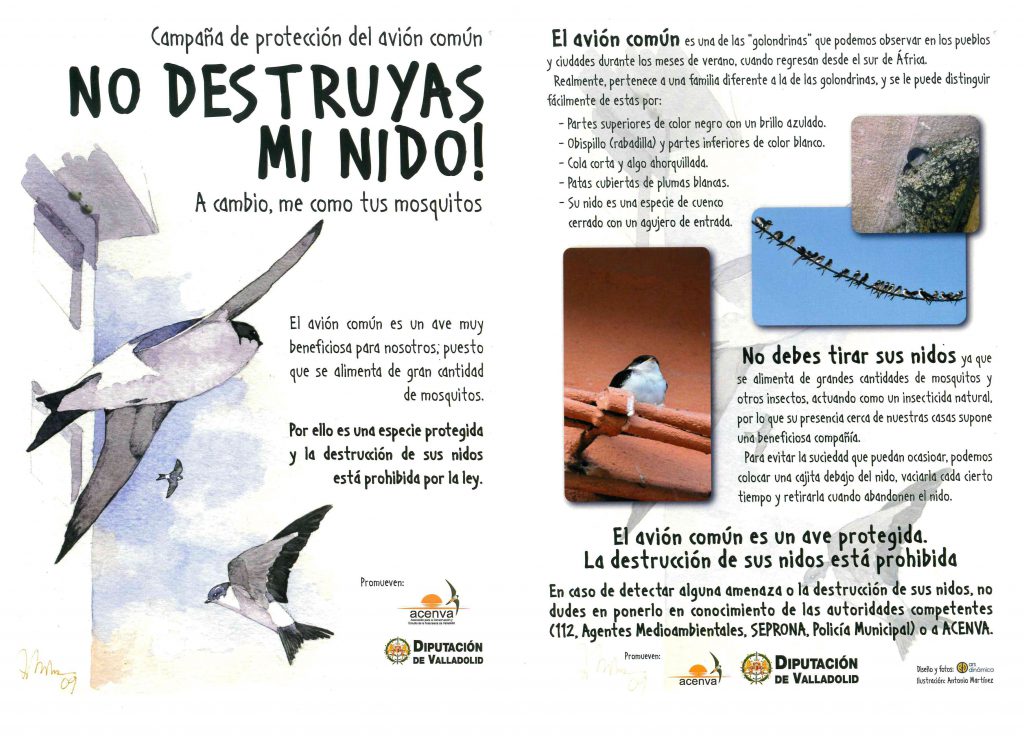 El Ayuntamiento de Laguna de Duero desde la Concejalía de Medio Ambiente informa sobre la normativa de protección de las “golondrinas” recordando que es una especie protegida.