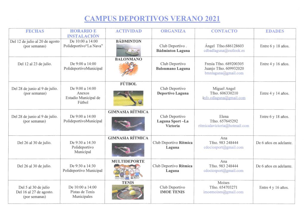 La Concejalía de Deportes en su deseo de promocionar la práctica deportiva durante este verano, facilita a los Clubes Deportivos del Municipio que así lo han solicitado, las instalaciones deportivas para que puedan desarrollar sus respectivos Campus Deportivos.
