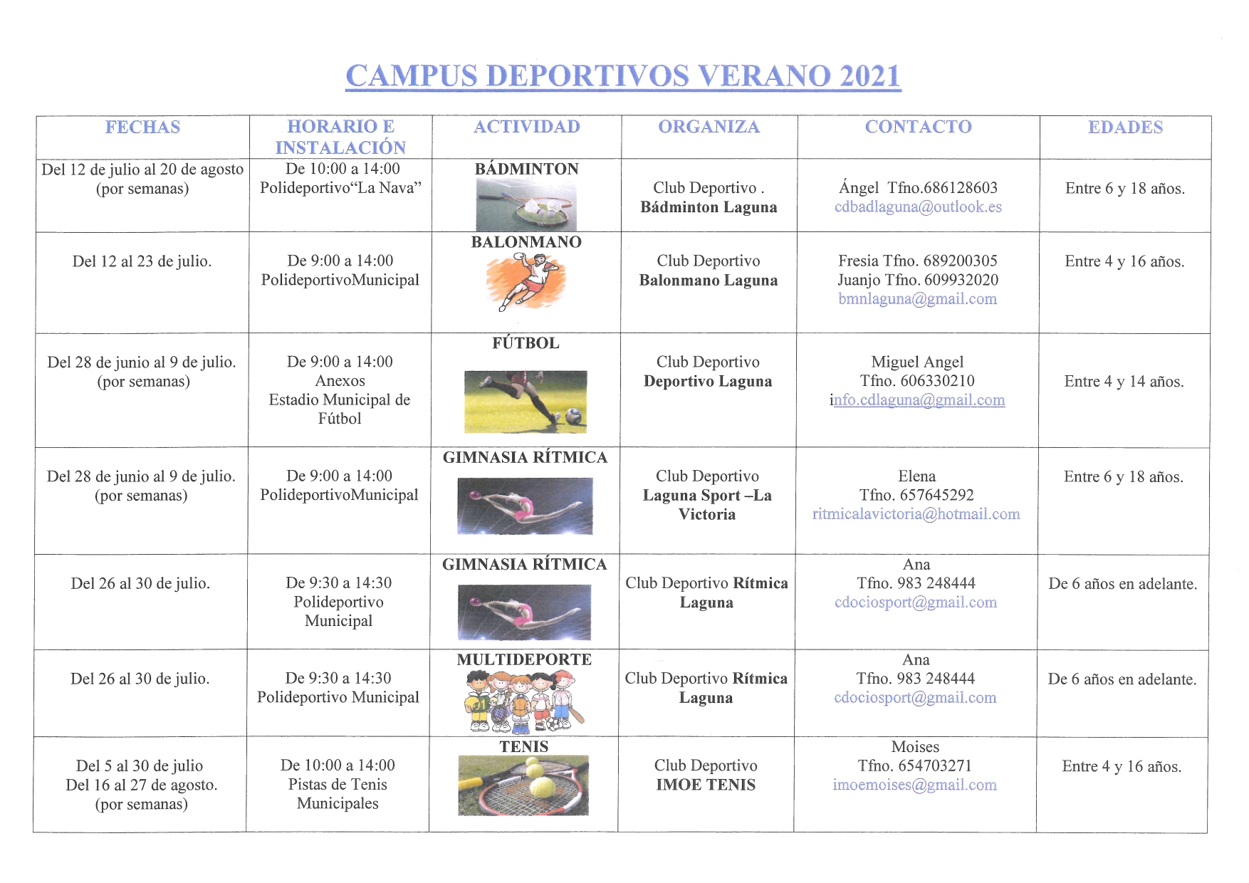 Campus deportivos verano 2021