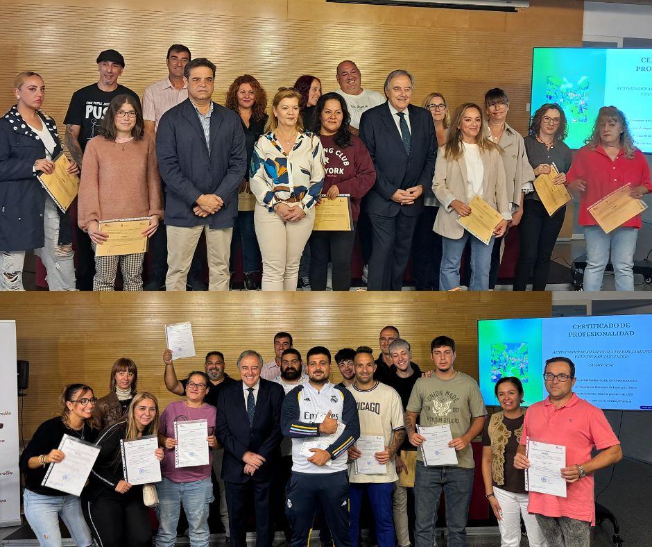 Los alumnos de los Programas Mixtos de “Zonas Verdes” y “Limpieza de edificios municipales” recogen sus diplomas