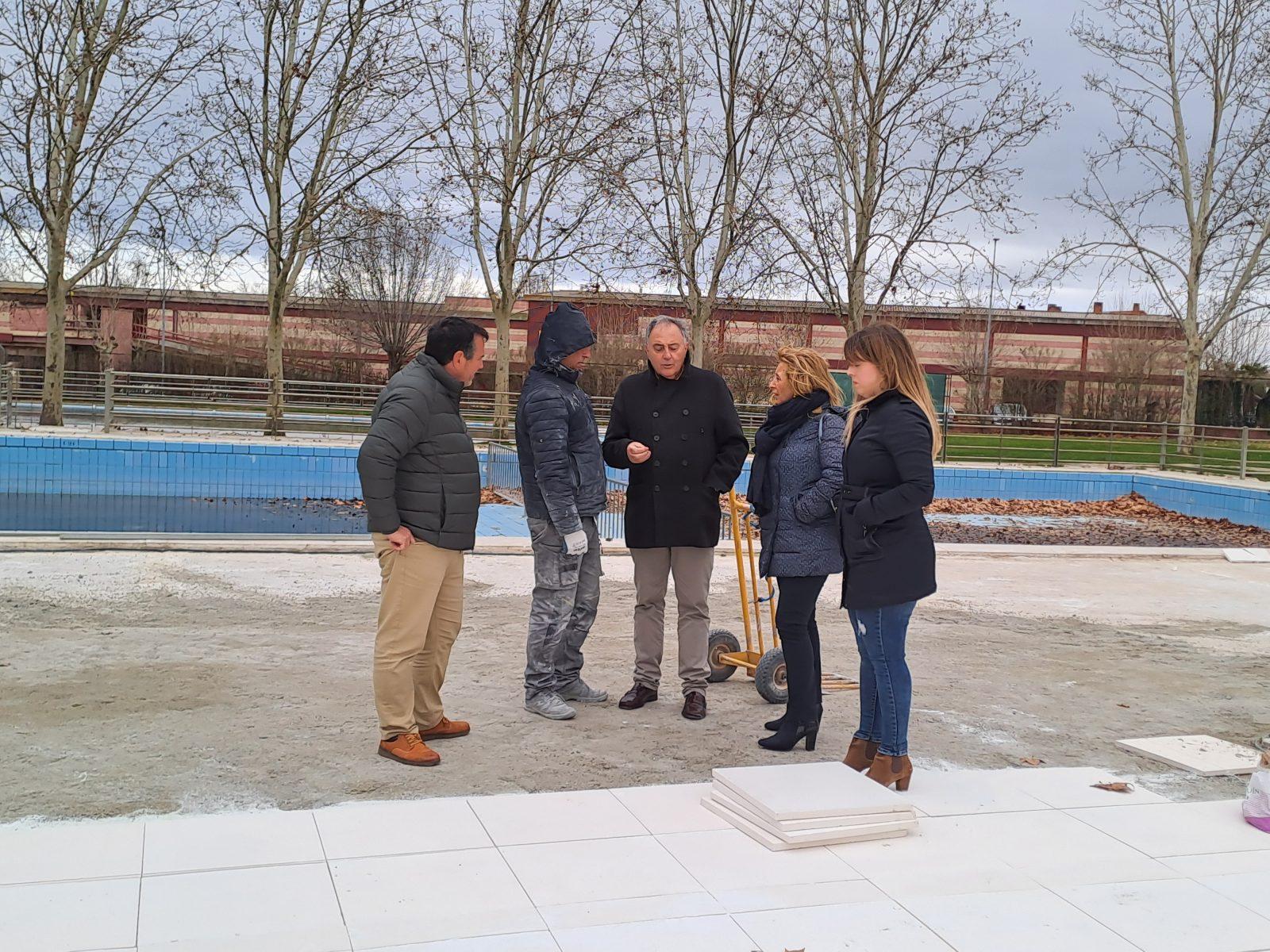 El Gobierno Municipal visita las obras que se están llevando a cabo en la piscina municipal de la localidad