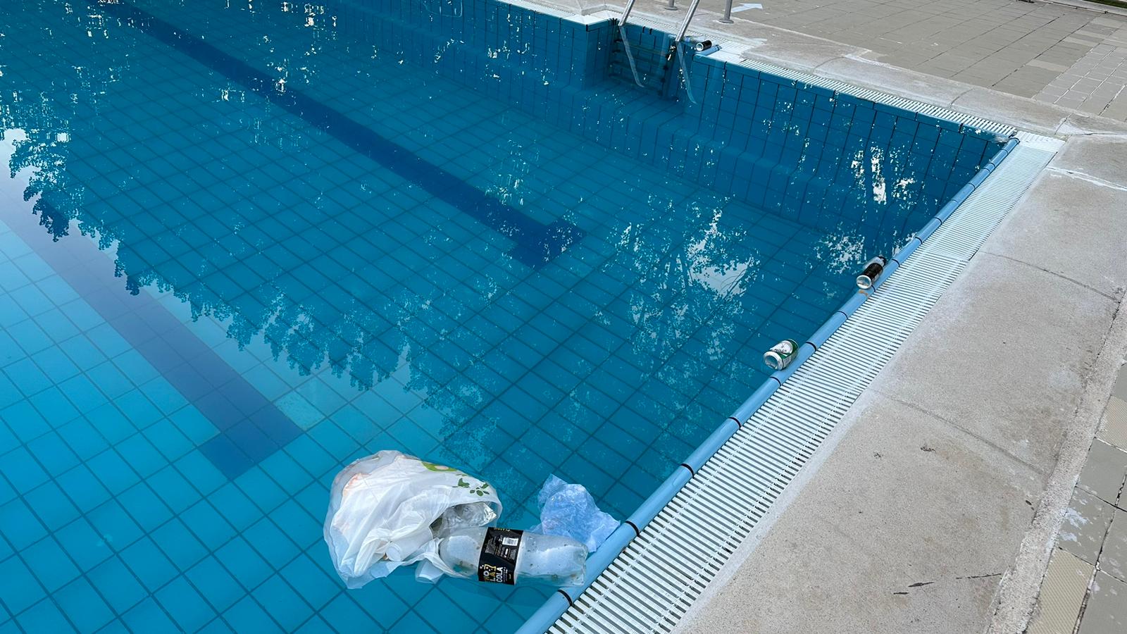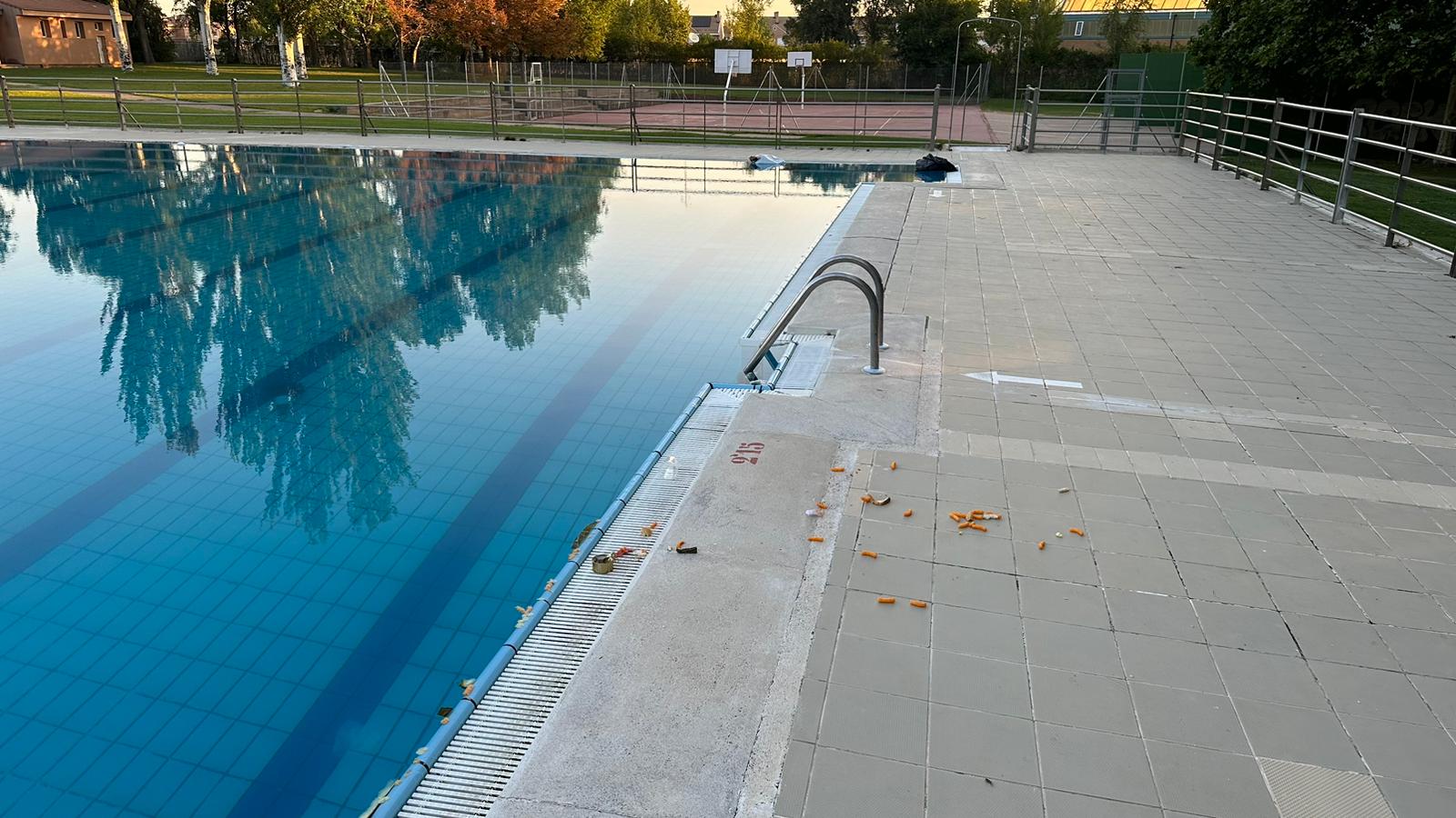 Unos individuos, aún sin identificar, se han saltado las vallas de las instalaciones y han arrojado basura en el agua de dicho vaso y en sus inmediaciones. El personal encargado del mantenimiento de la piscina ha procedido a clausurar el vaso afectado, que permanecerá cerrado hasta que se garantice la seguridad sanitaria del agua.