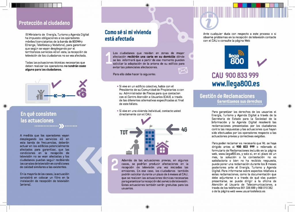 - Llega800 es la entidad encargada de garantizar la compatibilidad de este servicio 4G con la TDT en la banda de 800MHz