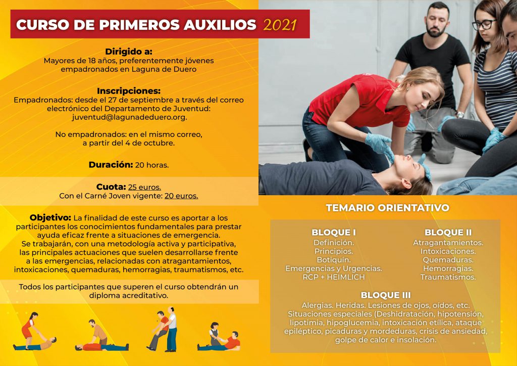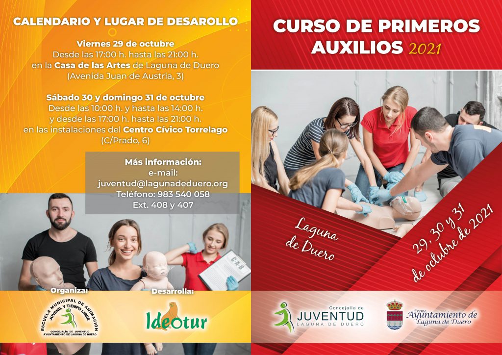 El Ayuntamiento de Laguna de Duero, desde el Área de Bienestar Social organiza el Curso de Primeros Auxilios que se desarrollará los próximos 29, 30 y 31 de octubre en la Casa de las Artes y C.C Torrelago.