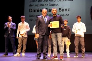 Para culminar, llegó el momento del ganador del Junco de Oro de esta edición, el ciclista lagunero, ya profesional, Daniel Cavia, quien por motivos deportivos no pudo recogerlo personalmente. La carrera ascendente da Cavia es innegable, campeón de Copa España y número 1 del ranking nacional sub-23.