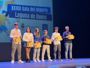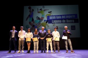La Casa de las Artes fue un año más el escenario de los Premios del Deporte de Laguna de Duero. Las butacas de su auditorio, prácticamente llenas, han sido durante algo más de una hora, el asiento de deportistas, entrenadores, presidentes de entidades y patrocinadores protagonistas del deporte lagunero, que además de recibir premios han podido divertirse gracias a los pequeños monólogos de su presentador, “Roberto Chapu”, que puso el toque de humor a la gala entre premio y premio. En el Evento, estuvo presente prácticamente la totalidad de la Corporación Municipal del Ayuntamiento de Laguna de Duero, además de diferentes autoridades como, por ejemplo, el diputado nacional, Pablo Sáez, el alcalde de Arroyo de la Encomienda, Sarbelio Fernández o el de Tudela de Duero, Óscar Rodríguez.