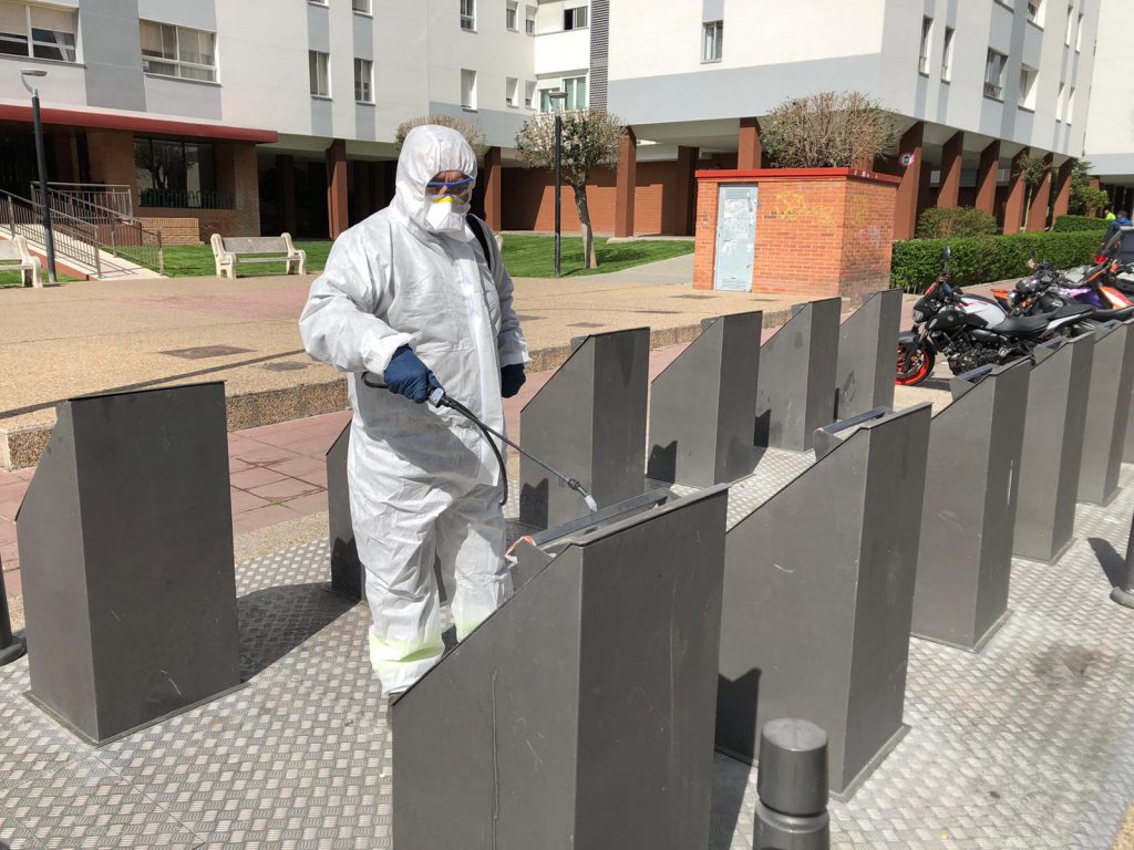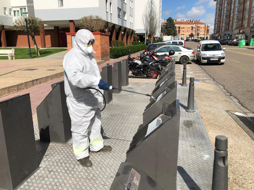 El Ayuntamiento de Laguna de Duero desde los Servicios municipales de limpieza y saneamiento, realizan durante estos días de confinamiento la desinfección de los contenedores.