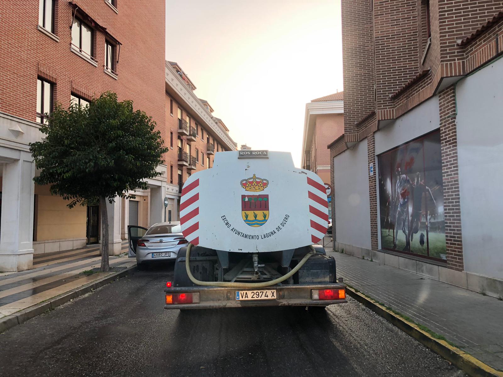 El Ayuntamiento de Laguna de Duero desde la Concejalía de Servicios Urbanos sigue hoy sábado 21 de marzo con las labores de desinfección.