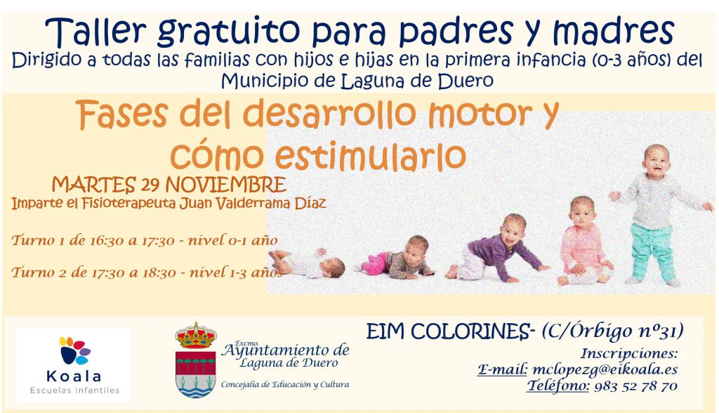 “Las fases del desarrollo motor y cómo estimularlo” el día 29 de noviembre de 2022, en la Escuela Infantil Municipal de Laguna de Duero “Colorines”: