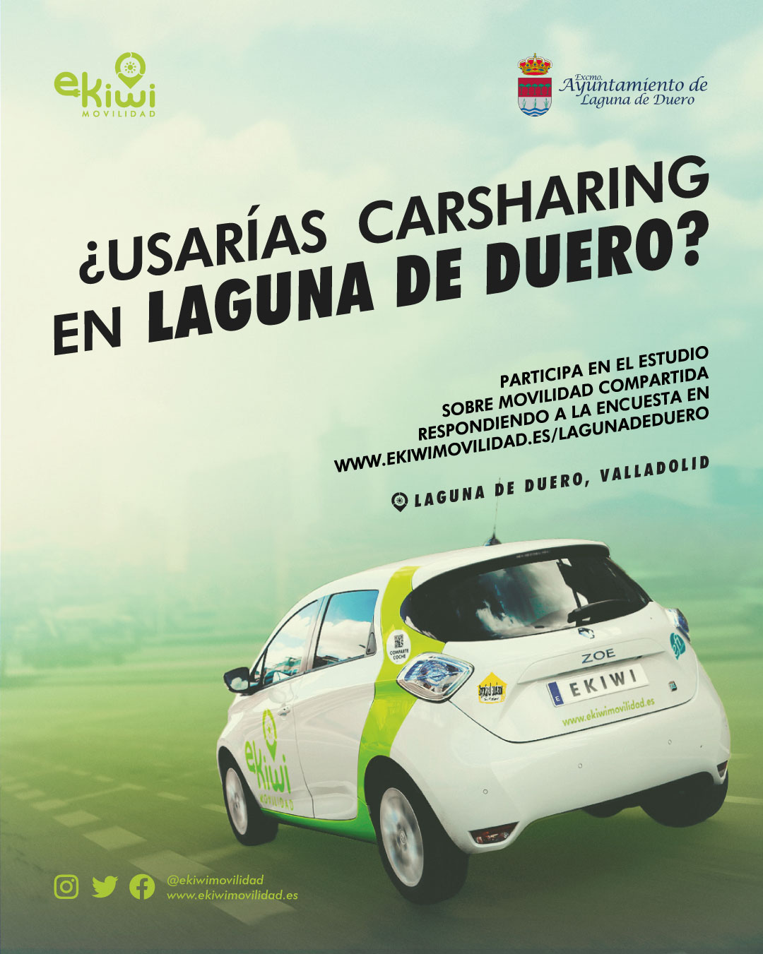 El Ayuntamiento de Laguna de Duero desde la Concejalía de Seguridad Ciudadana y Medio Ambiente en colaboración con la cooperativa castellanoleonesa Ekiwi Movilidad, informa sobre el estudio sobre la viabilidad de la implantación de un servicio de vehículos compartidos en la localidad.