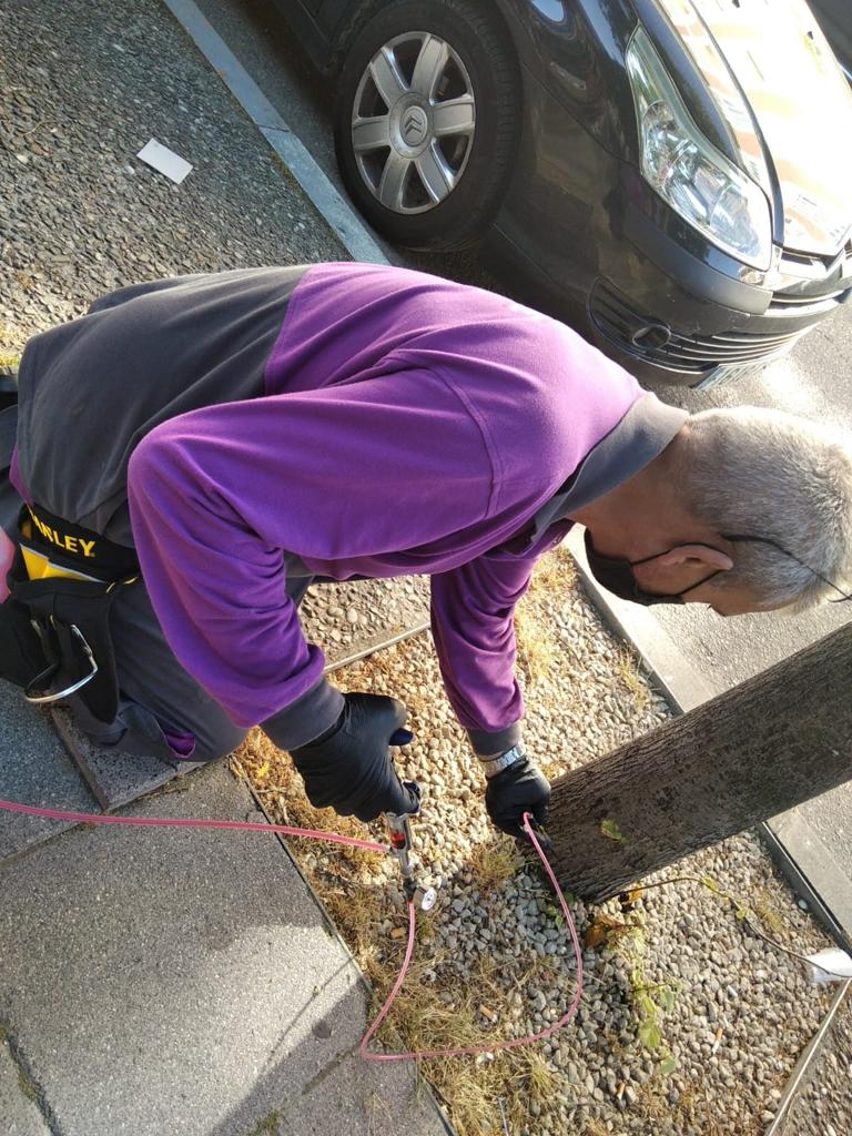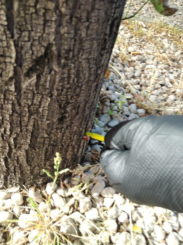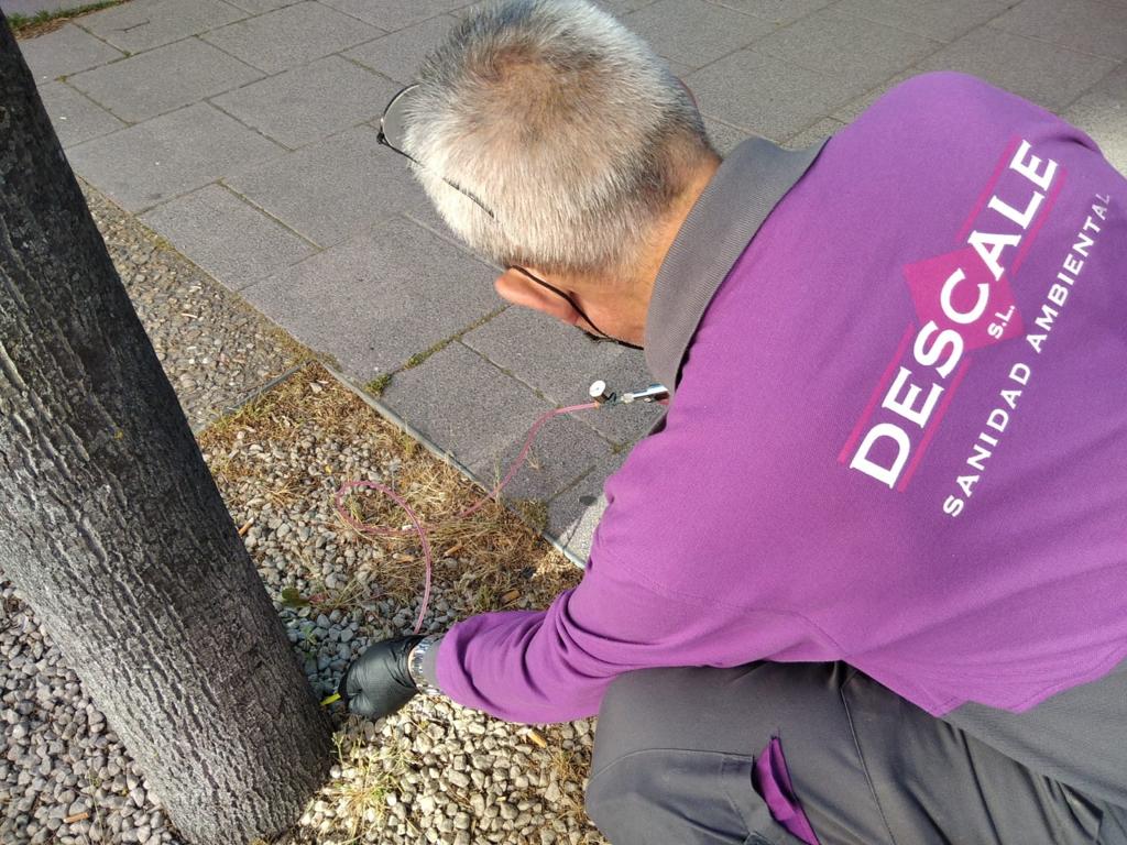 Se está poniendo en práctica un tratamiento de endoterapia vegetal arbórea, una técnica para el control de plagas y enfermedades consistente en la aplicación de un método terapéutico de tratamientos fitosanitarios a base de la inyección del producto fitosanitario directamente en el sistema vascular del árbol.