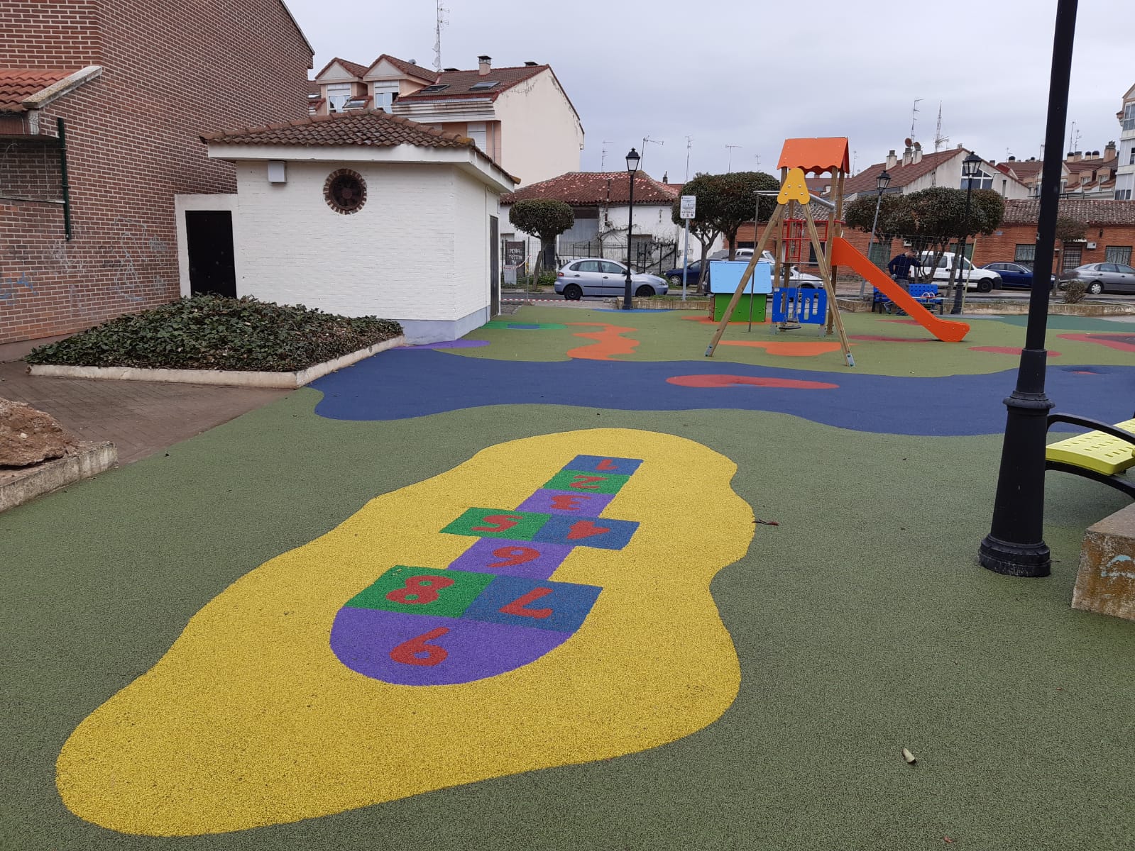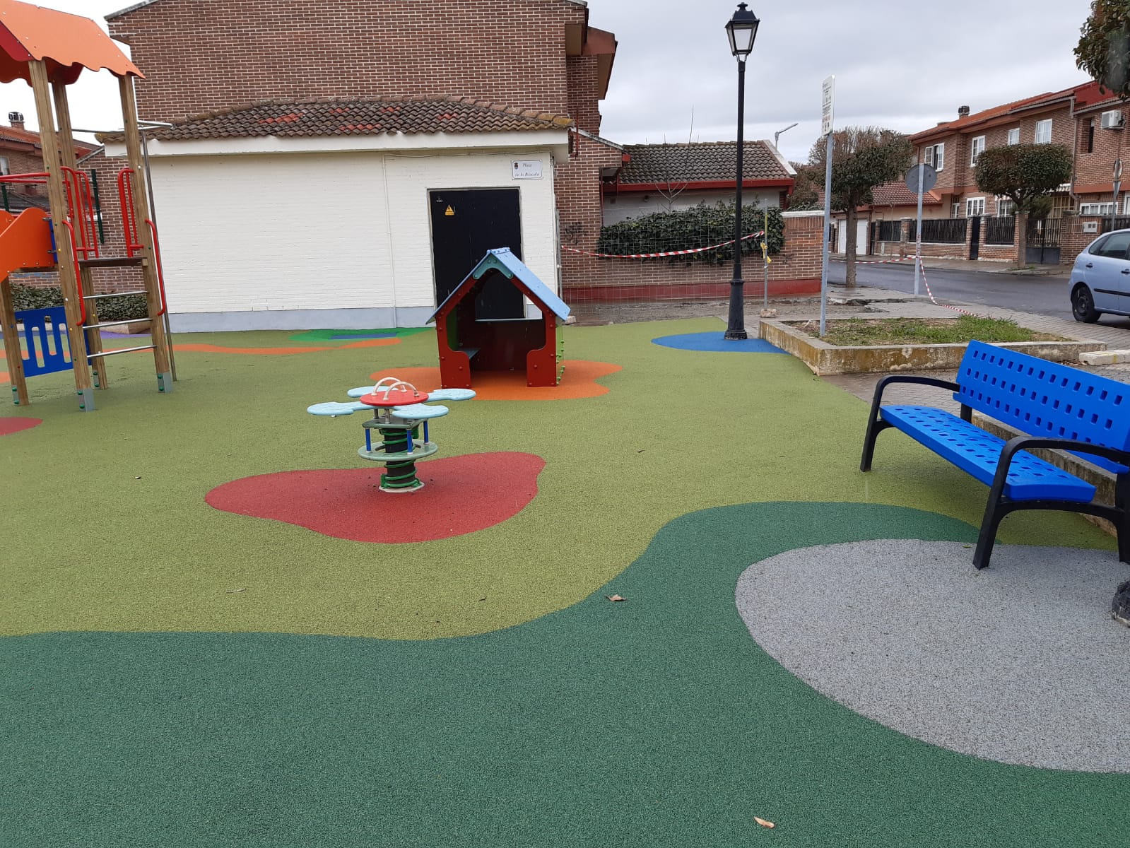 Se ha procedido a recubrir el parque con suelo de caucho, dentro de las áreas de juego los suelos de caucho para parques infantiles tienen propiedades amortiguadoras para garantizar la protección ante posibles caídas a diferentes alturas.