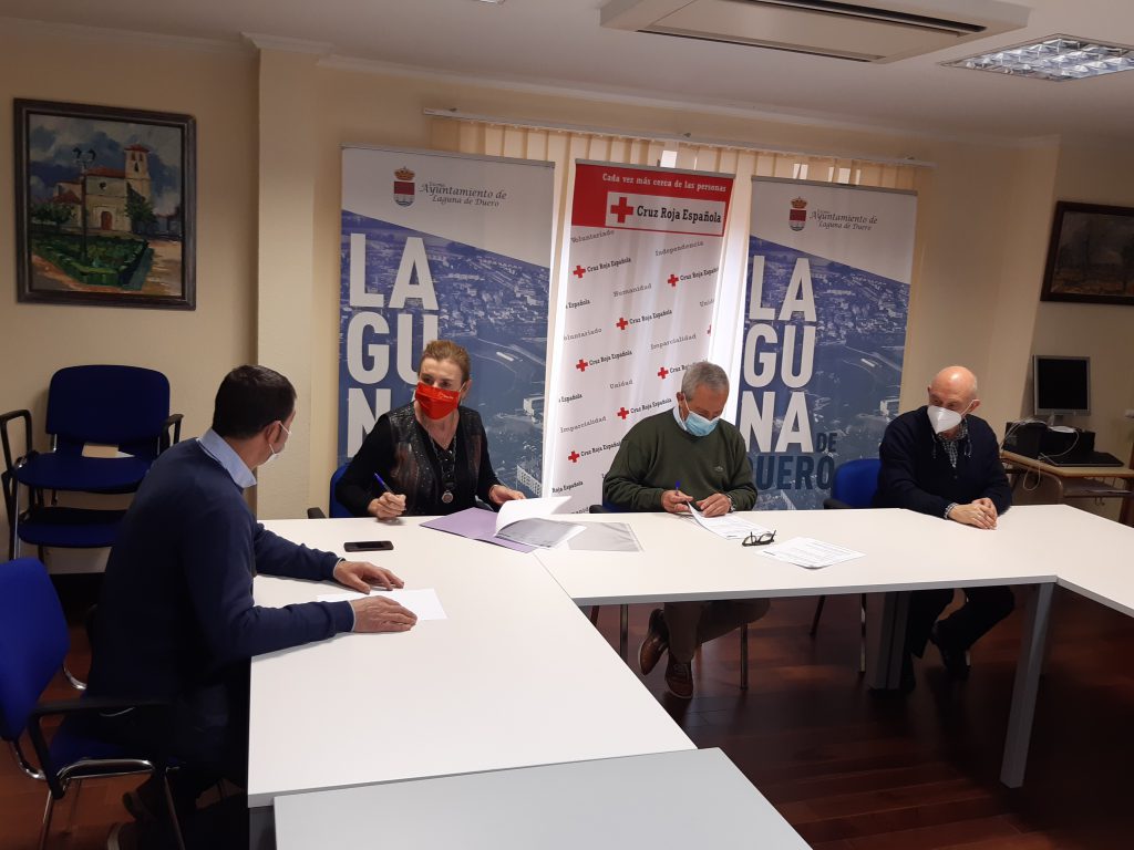 El Ayuntamiento de Laguna de Duero ha firmado este jueves 26 de noviembre del convenio de colaboración con Cruz Roja,en el acto estuvieron presentes ,el Alcalde,Román Rodríguez de Castro, la Presidenta Provincial de Cruz Roja Valladolid,Rosa Urbón,el Secretario del Ayuntamiento de Laguna de Duero ,Francisco Illerías Sanmaniego,el Concejal de Servicios Sociales,Fernando Vara y la Presidenta de la Asamblea Comarcal de Cruz Roja en Laguna de Duero,pilar Feijoo.