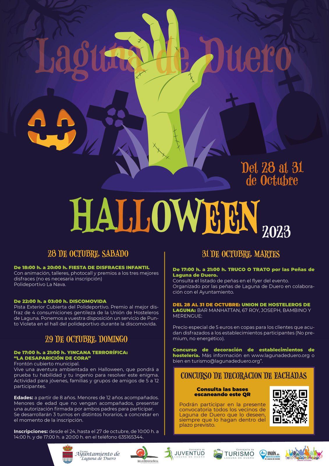 Además, todos los vecinos de Laguna de Duero podrán participar en el Concurso de Decoración de Fachadas, cuyo objetivo será la decoración de las fachadas, balcones, ventanas y jardines exteriores de las viviendas particulares para crear un ambiente festivo y de dinamización de las calles del municipio. Las inscripciones se harán desde el 23 de octubre hasta las 13:00 horas del 27 de octubre a través del correo electrónico turismo@lagunadeduero.org indicando su nombre y apellidos, teléfono de contacto, dirección de correo electrónico y dirección de la casa que va a decorar o bien presencialmente en el Área de Bienestar Social. La temática será Halloween y la decoración deberá estar visible desde la misma tarde del 27 de octubre hasta el 1 de noviembre de manera interrumpida. Se otorgarán 4 premios de 100 euros.