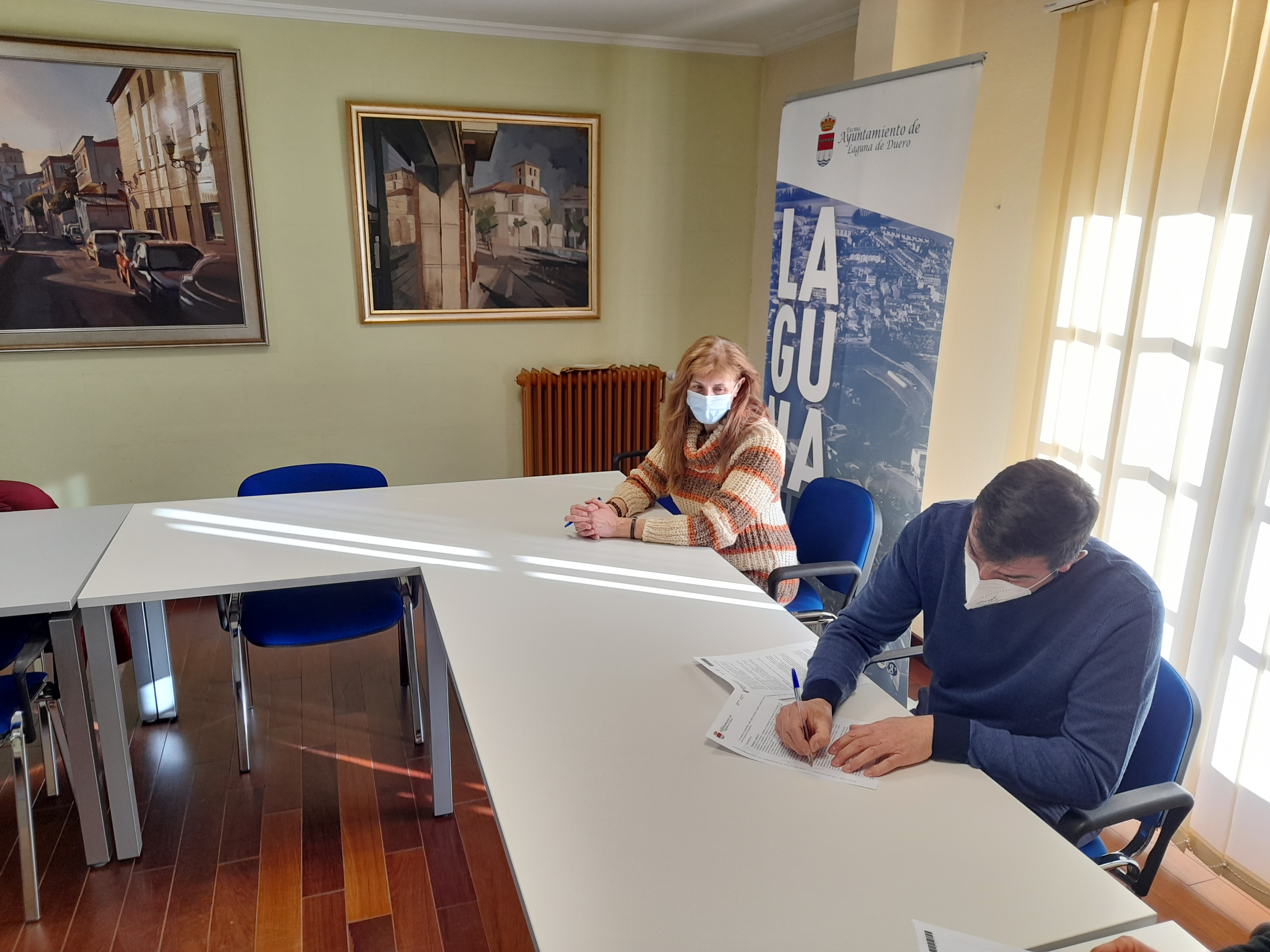 El Ayuntamiento de Laguna de Duero desde la Concejalía de Servicios Sociales, firma un convenio de colaboración con Fundación Personas Valladolid para el desarrollo del programa de prácticas de itinerarios personalizados de inserción sociolaboral dirigido a personas con discapacidad. En la firma estuvieron presentes el concejal de Servicios Sociales, Fernándo Vara Arribas y la de Delegada territorial de Fundación Personas en Valladolid , Dña. María Eugenia del Olmo Prieto.