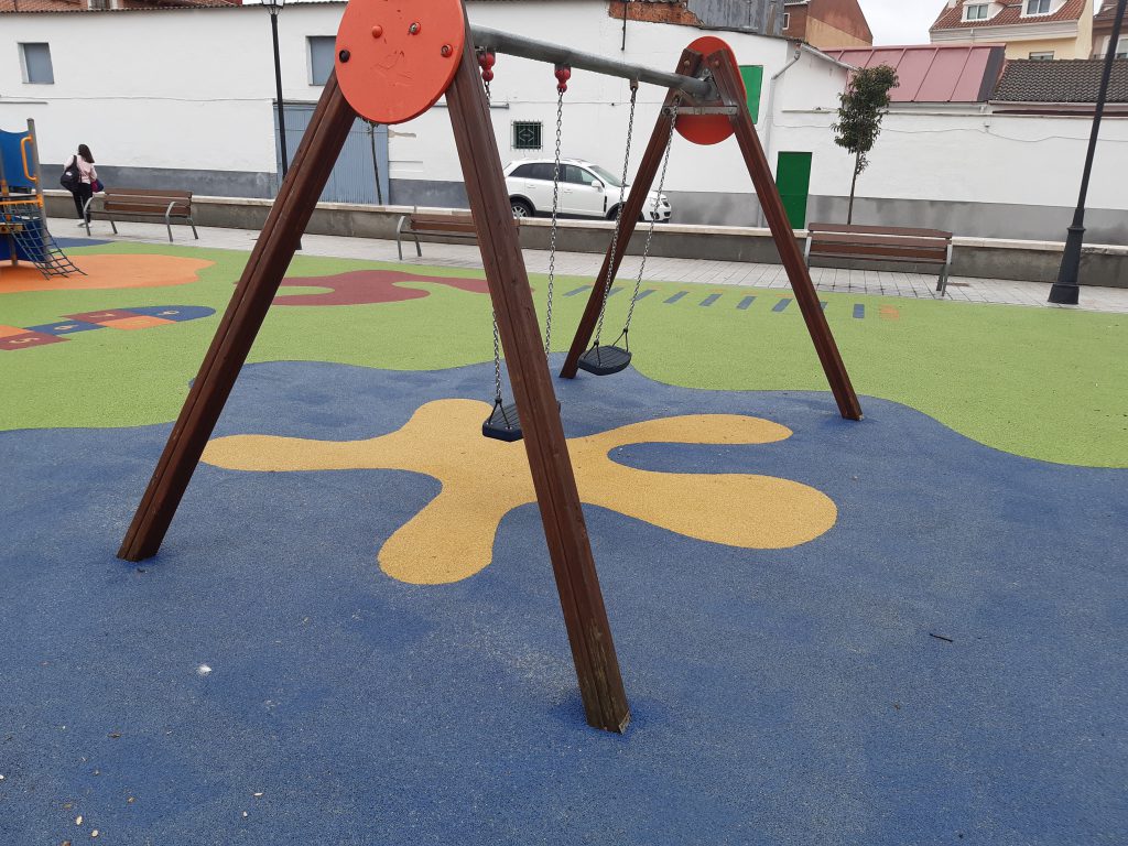 Además de los columpios ya instalados, se ha incluido la renovación del espacio dedicado a juegos infantiles de la plaza incluyendo en el suelo de seguridad, dos juegos tradicionales infantiles, como la rayuela y la línea horizontal.