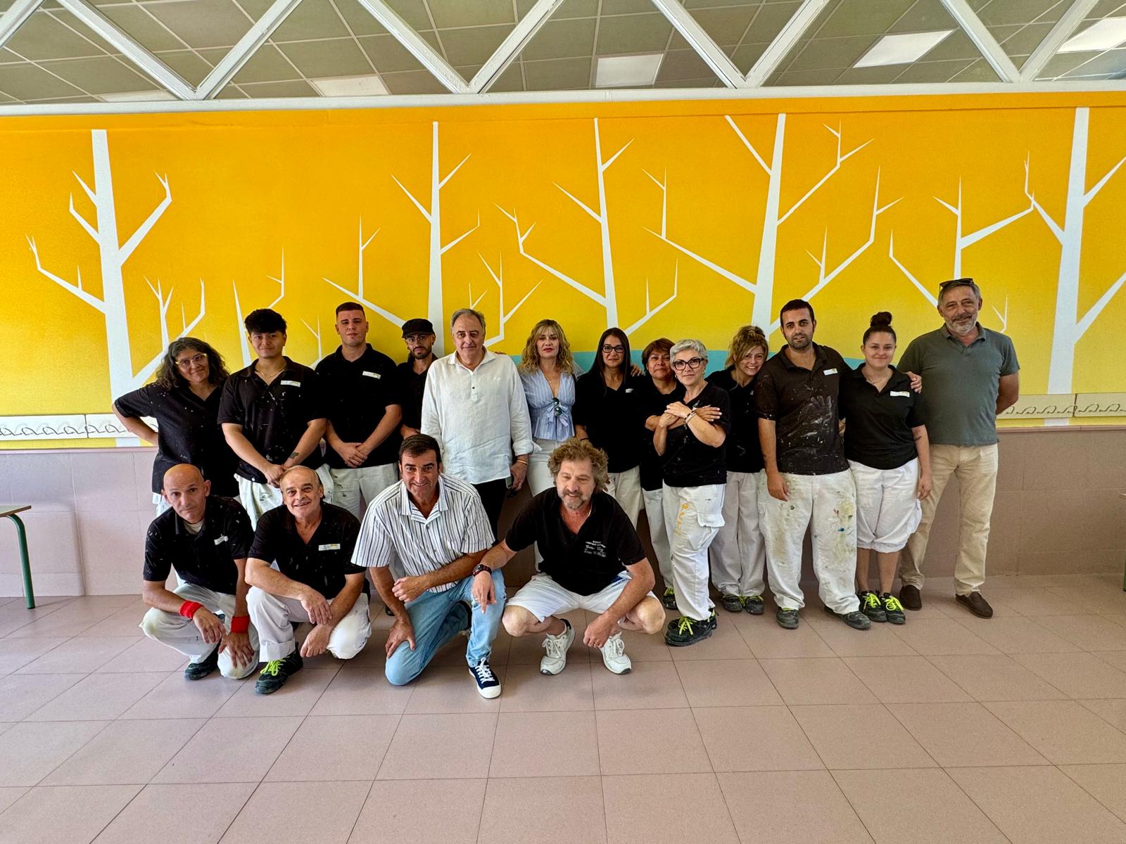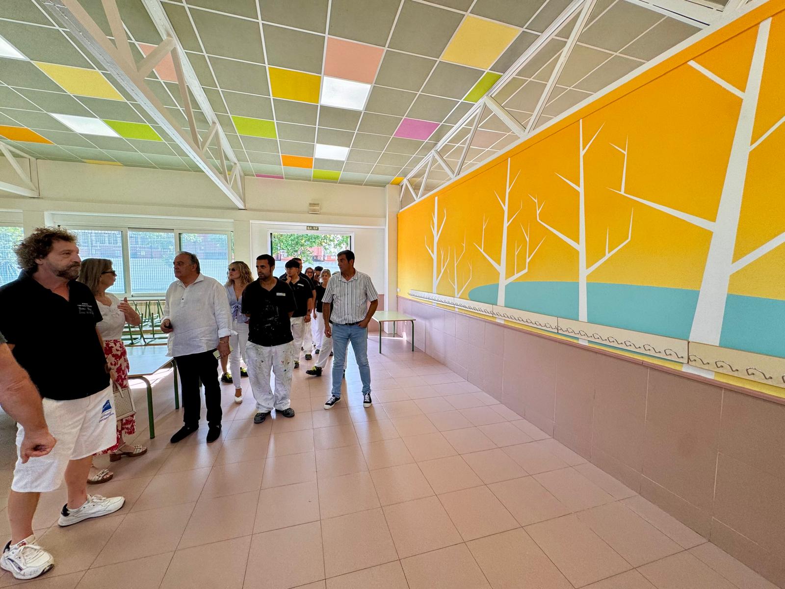 Más de 1.500 m2 de superficie del interior han mejorado su aspecto, consiguiendo un ambiente más claro, alegre y luminoso con la pintura de aulas, despachos y zonas comunes. Además, como trabajo singular se ha realizado un mural de pintura de decoración ambiental en el comedor inspirado en la laguna del municipio.