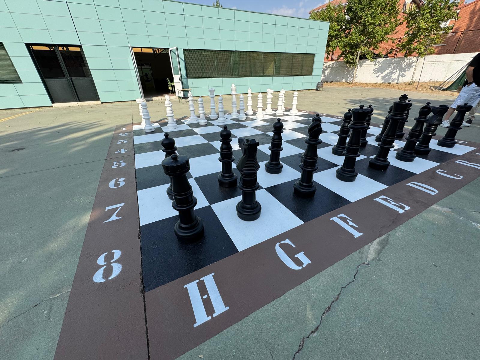 Además, en los patios del exterior se han llevado a cabo diseños de varios juegos infantiles sobre el pavimento con diversas técnicas de pintura especiales: ajedrez gigante, serpiente numérica, caracol abecedario, cohete rayuela y tortuga diana.