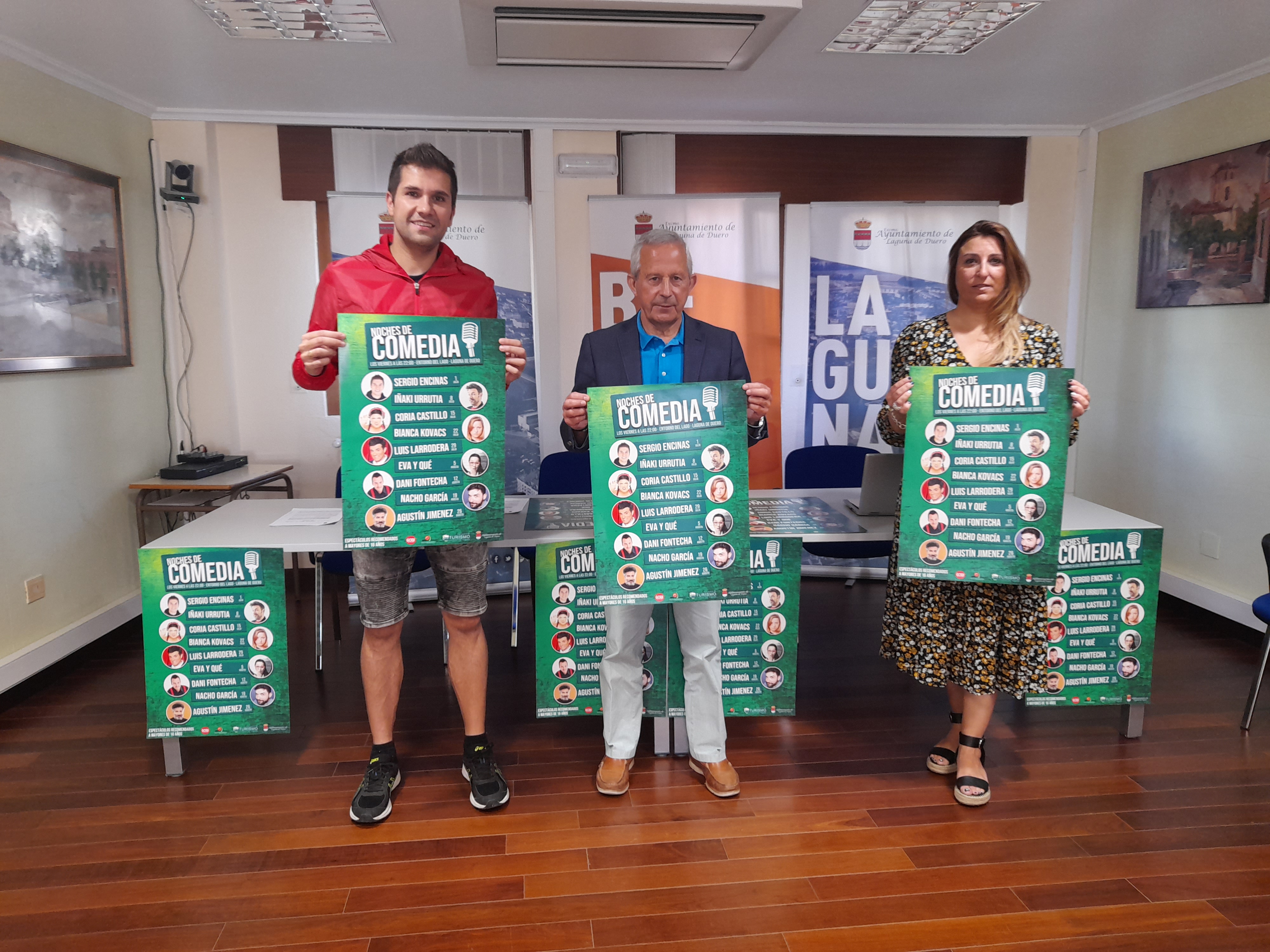El alcalde de Laguna de Duero, Román Rodríguez de Castro y la concejal de Turismo, Estela Crespo, acompañados del cómico Vallisoletano, Sergio Encinas, presentan las “Noches de Comedia 2022”, una programación veraniega, cargada de humor para disfrutar en directo de los mejores monologuistas del panorama nacional. Nueve actuaciones cargadas de humor “de primer nivel” que se extenderán hasta agosto y “que constituye un gran incentivo para visitar Laguna de Duero impulsando el turismo y la riqueza Medioambiental del municipio. “Apostamos por el ocio desarrollado y mezclado así, con un cartel de monologuistas a nivel nacional conocidos por todos, empezamos abriendo con Sergio Encinas, el cual, ya participó hace años en el festival de monólogos que se celebró en la Casa de las Artes” declara Estela Crespo, concejal de Turismo.