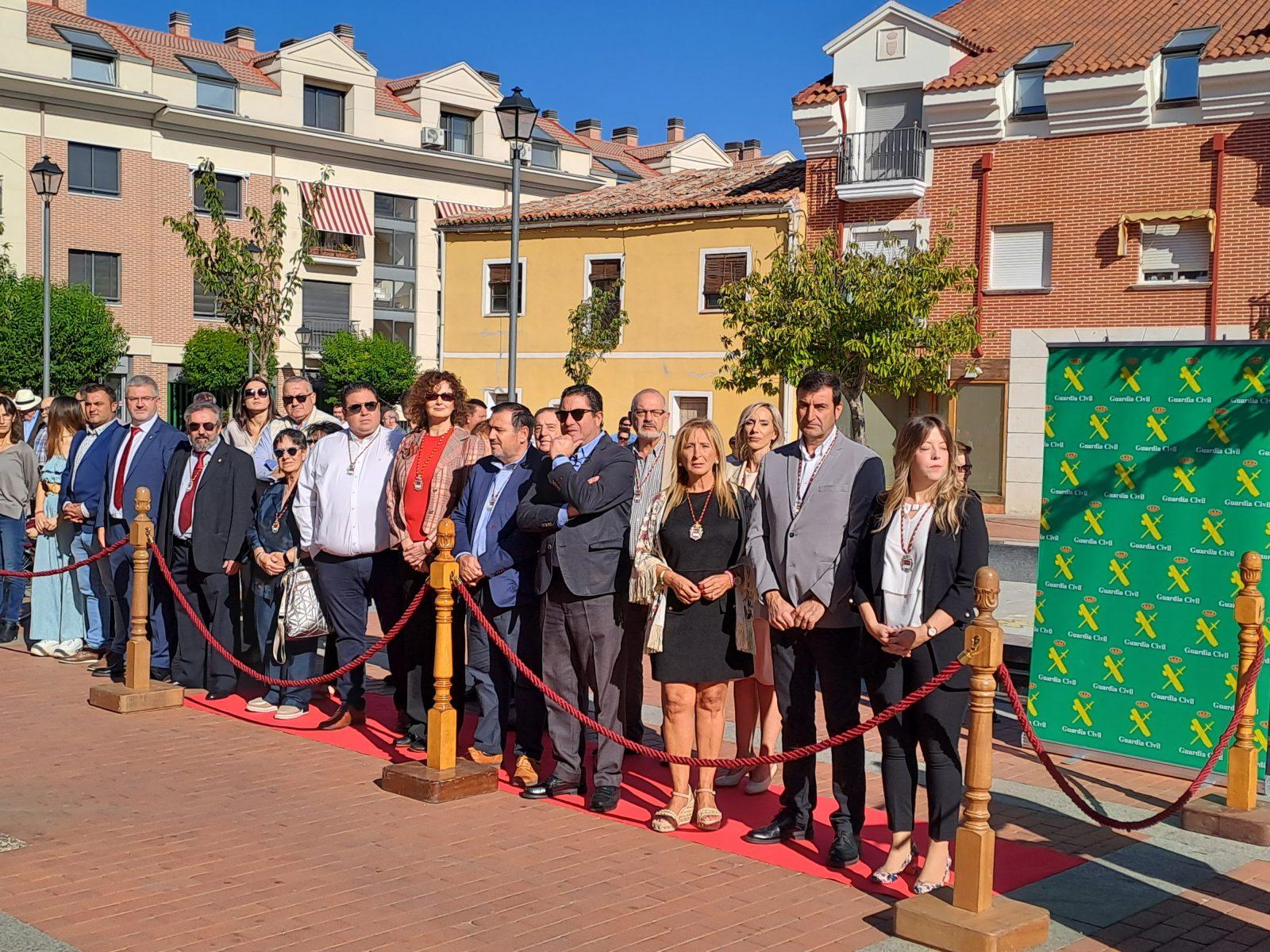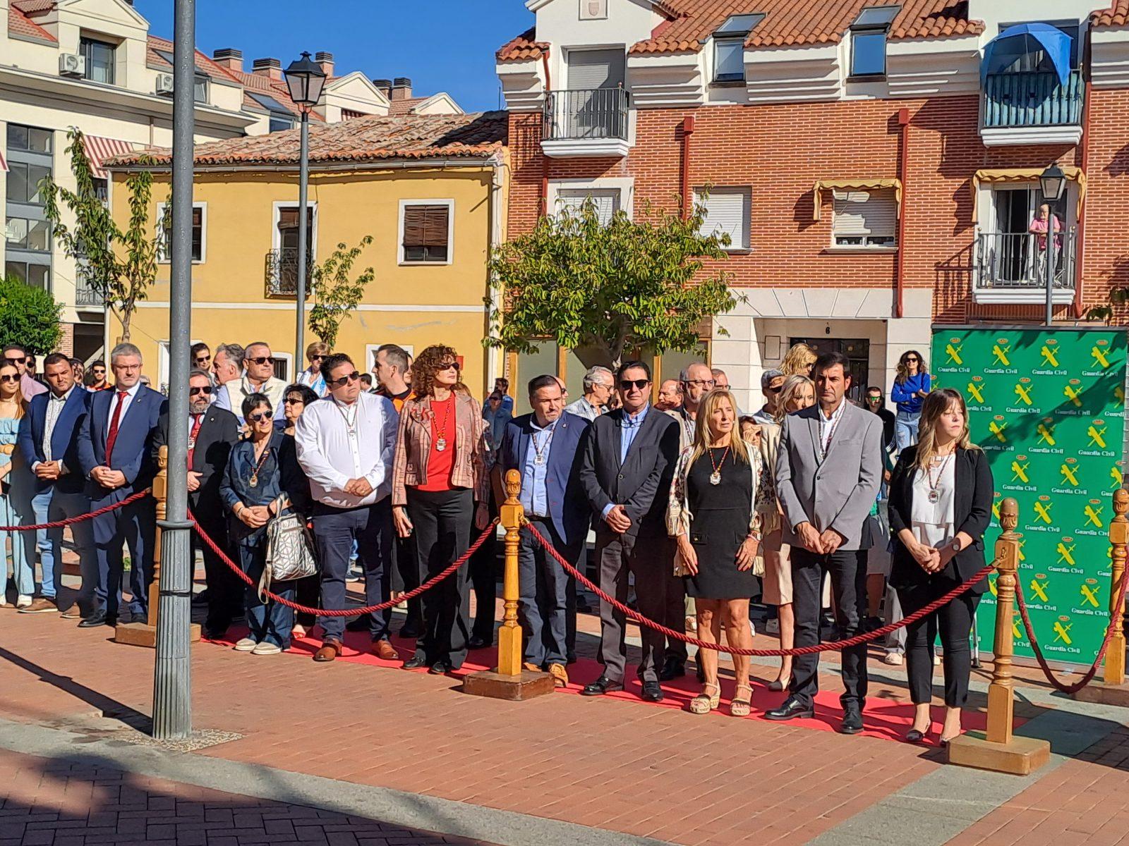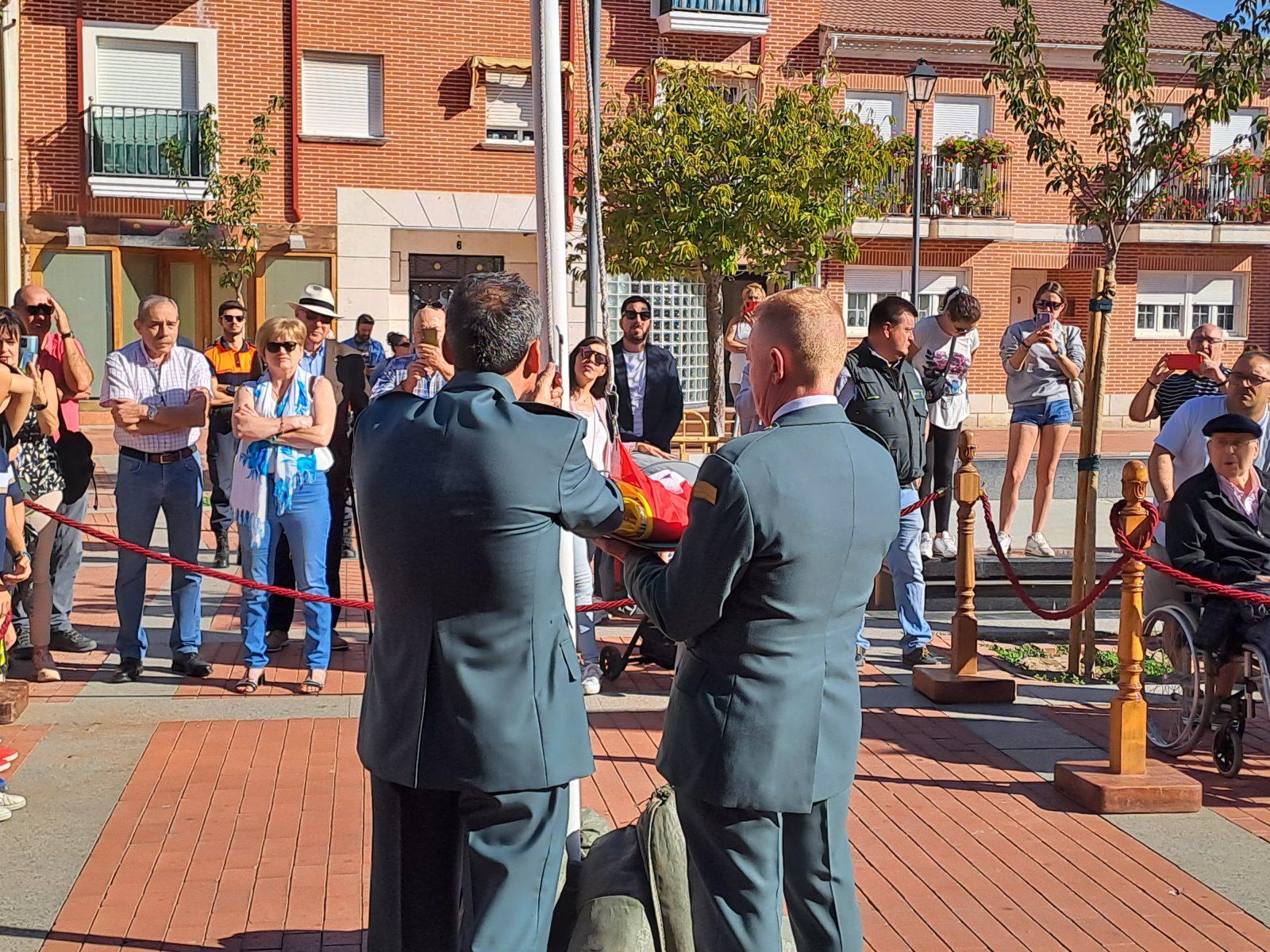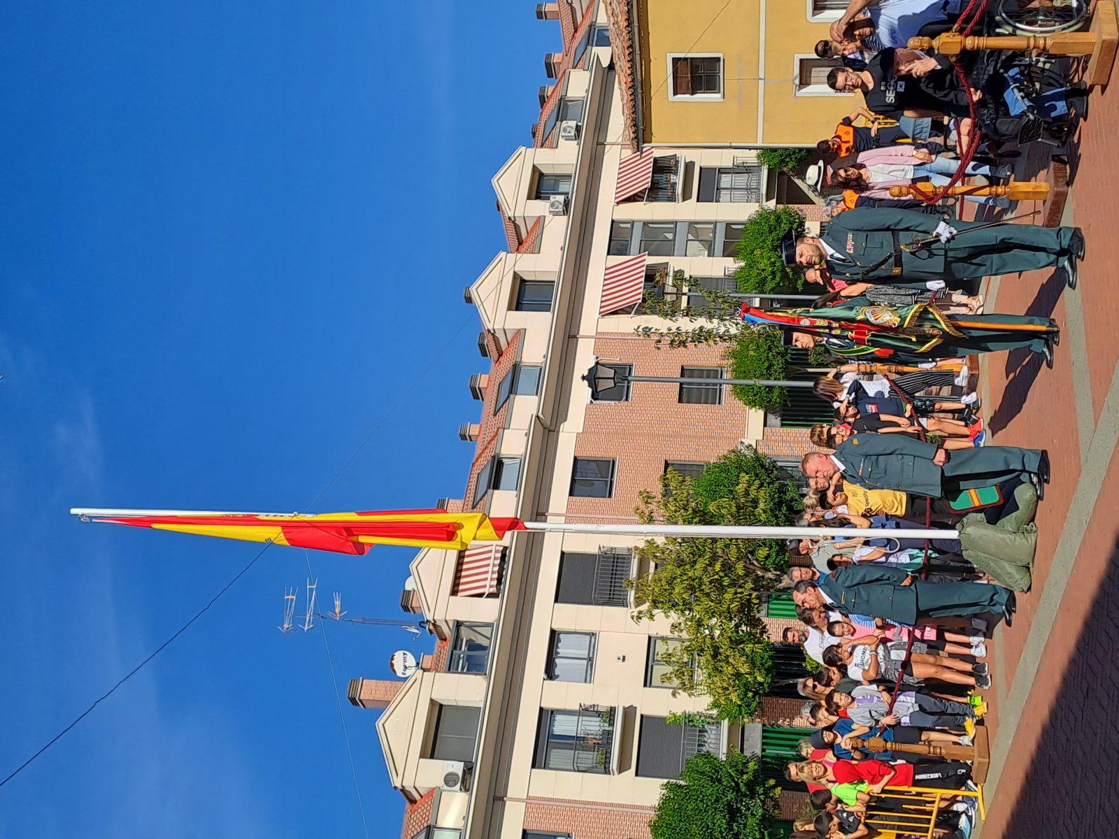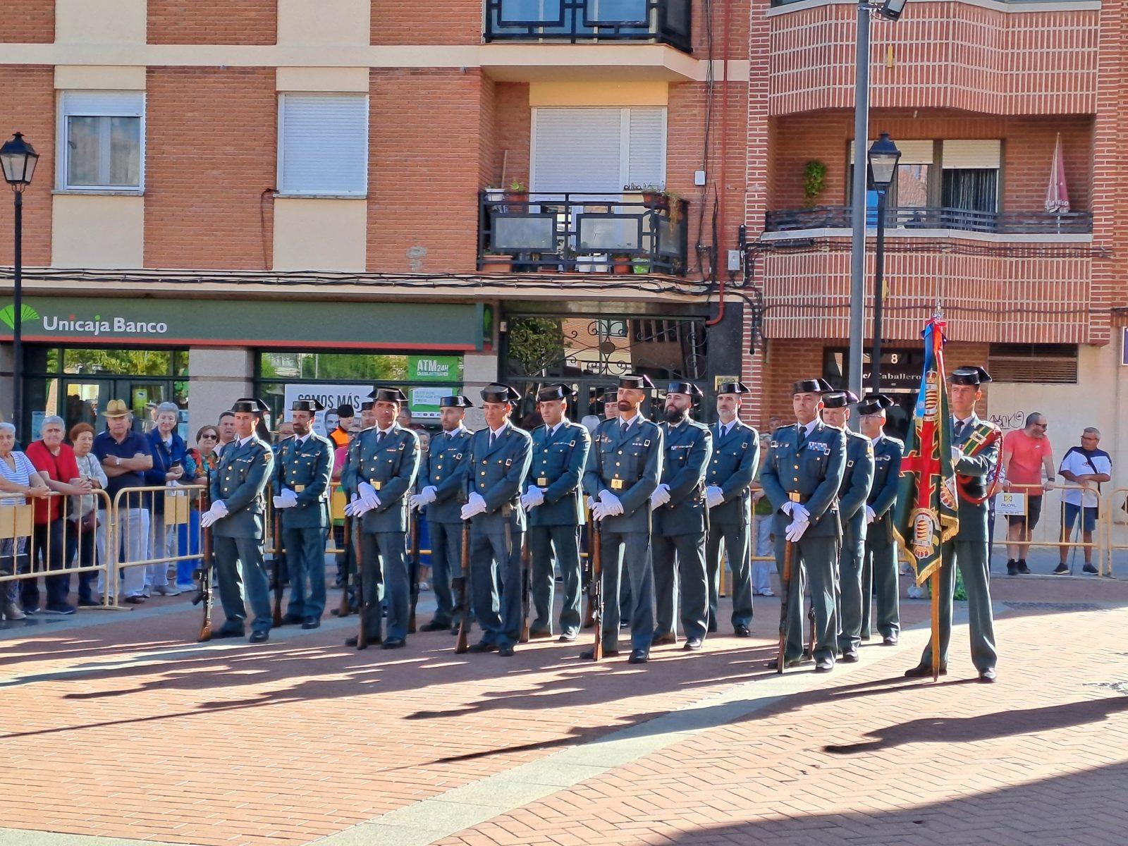 La Plaza del Ayuntamiento ha sido el escenario a las once y media de esta mañana de un acto con motivo del próximo Doce de Octubre, jornada en la que se celebra la patrona de la Guardia Civil, la Virgen del Pilar. Por esto, se ha llevado a cabo un izado de la enseña nacional con un posterior desfile abierto a todo el municipio.