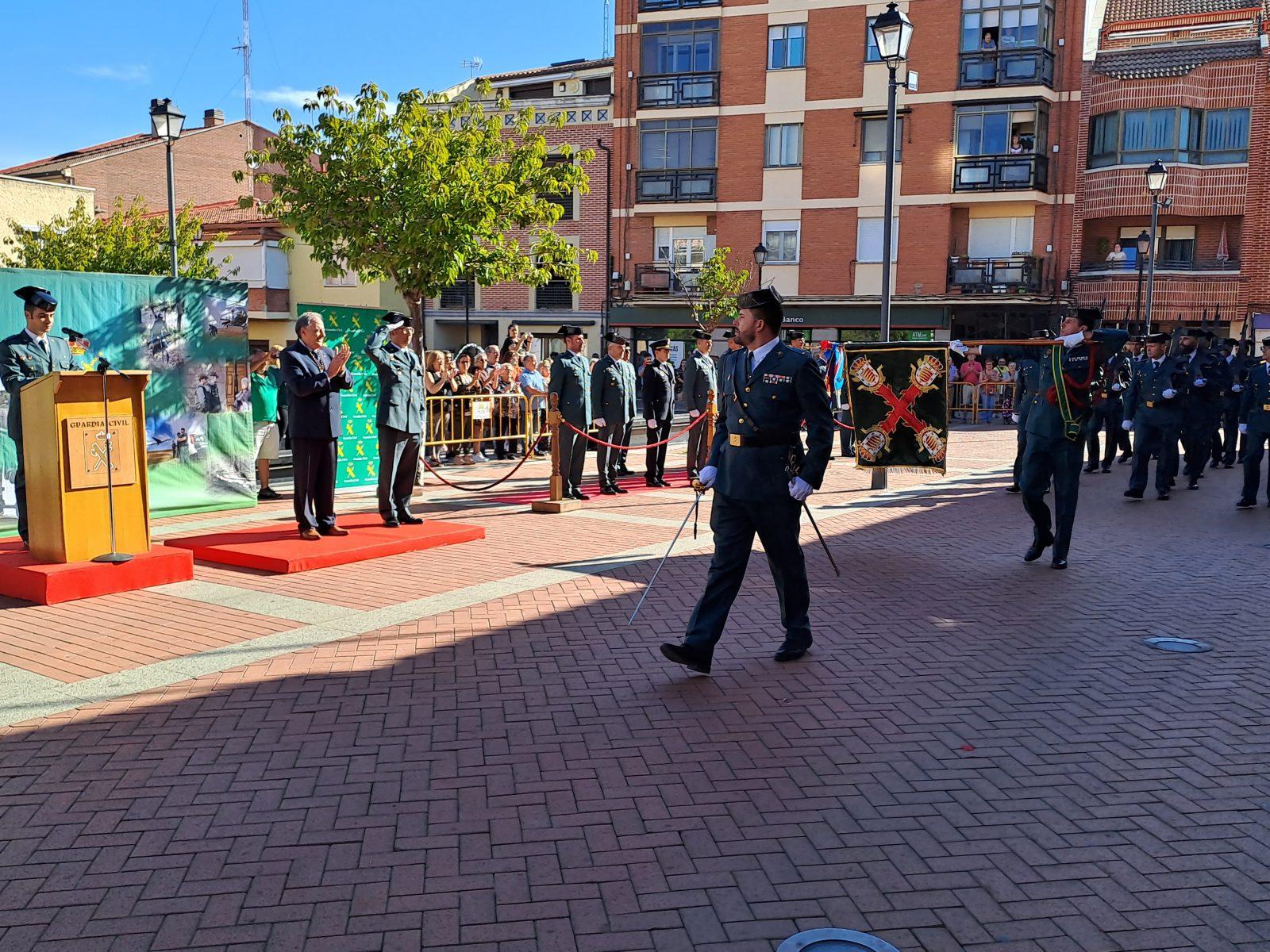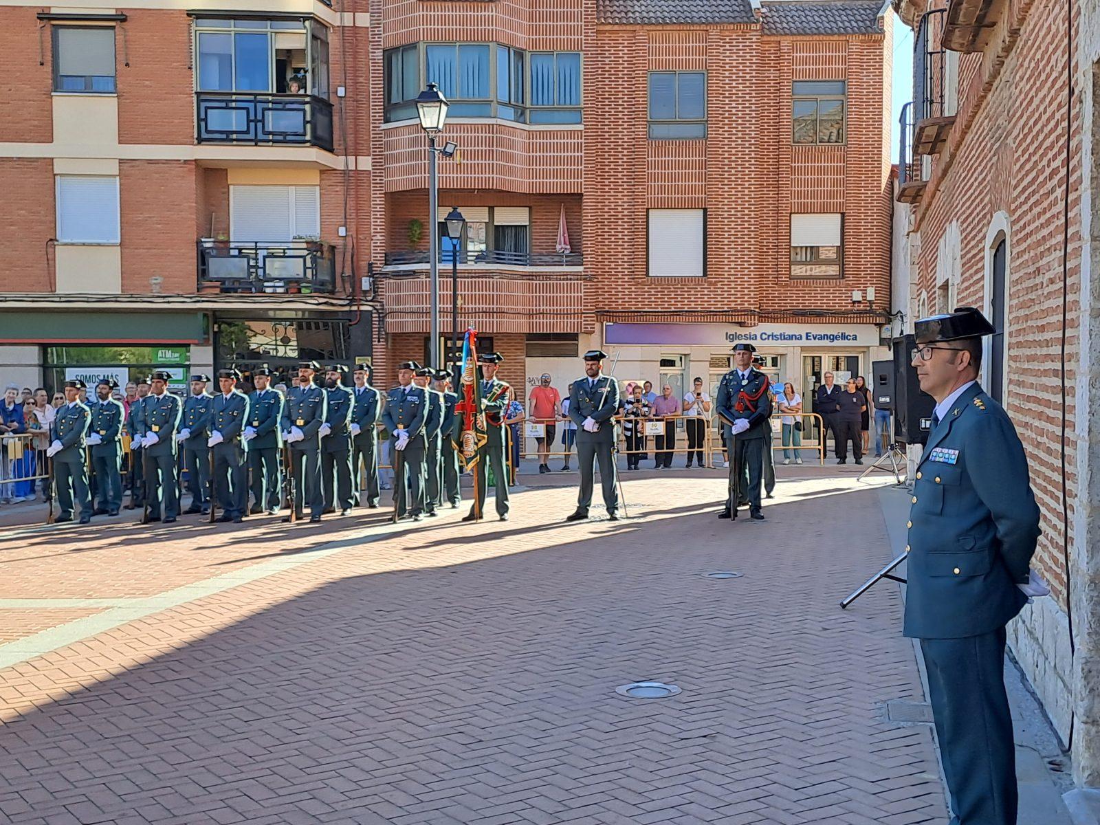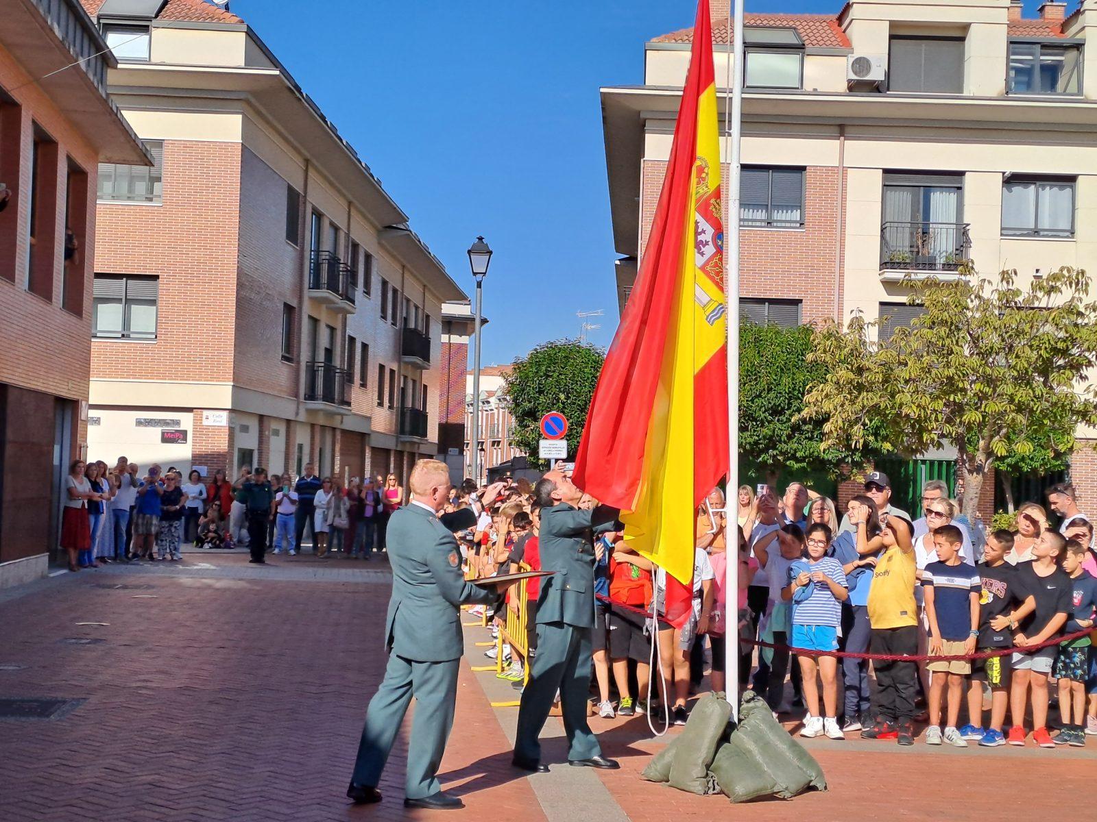 El Jefe de la Comandancia de Valladolid, el coronel Andrés Manuel Velarde Tazón, ha presidido el acto junto con el alcalde de Laguna de Duero, Avelino Álvarez. El acto ha comenzado con el pase de revista a la Sección de Honores que esperaba en formación por parte del Jefe de la Comandancia. Posteriormente se ha llevado a cabo el izado de bandera, que ha sido portada por dos guardias hasta el mástil colocado en la zona derecha de la plaza. Tras esto, tuvo lugar un desfile por delante de las autoridades. En él ha participado una sección de 15 miembros entre suboficiales, cabos y guardias, el guión de la Comandancia y el teniente de la sección. Además, han estado igualmente presentes dos vehículos conducidos por dos guardias.