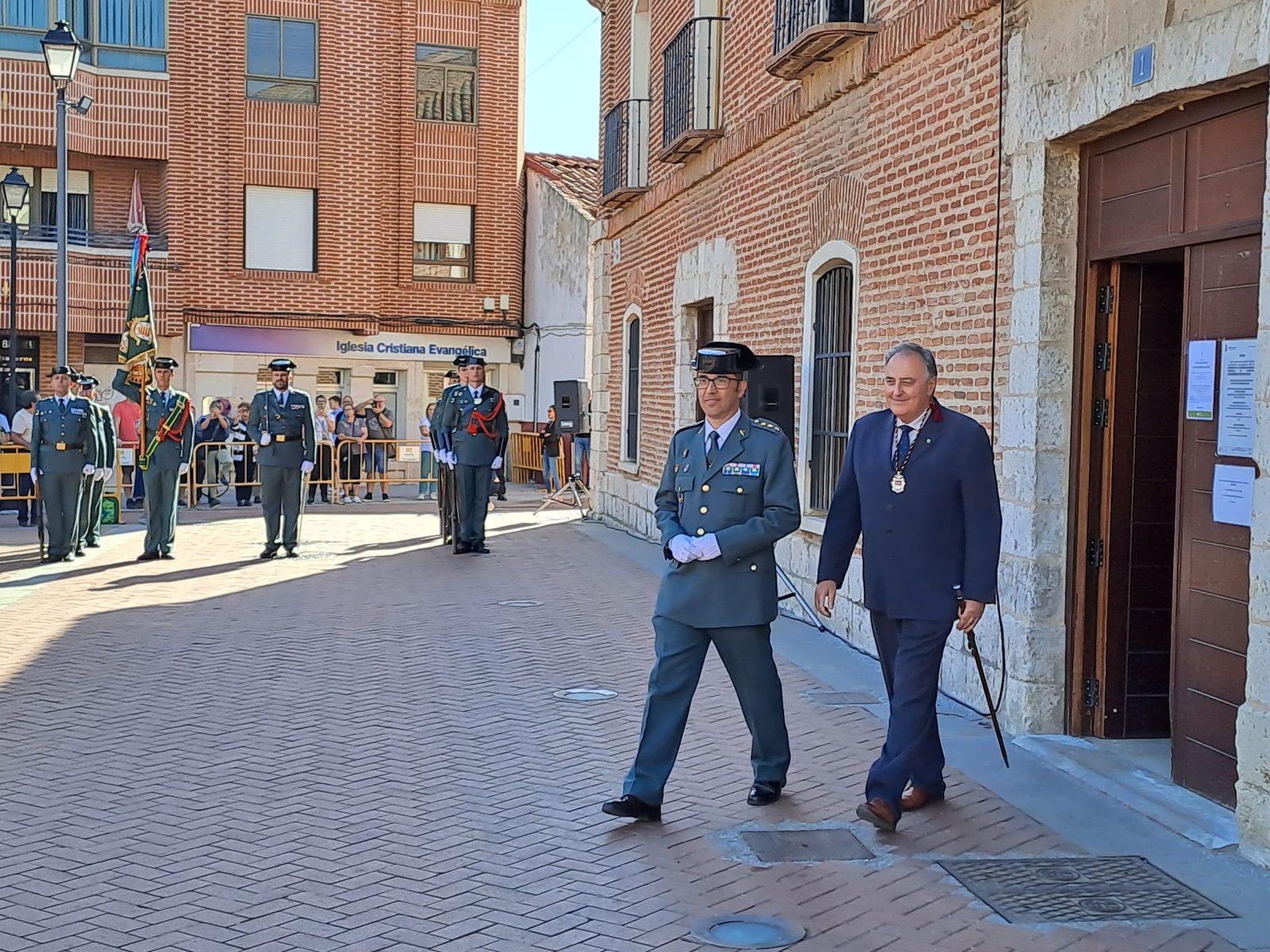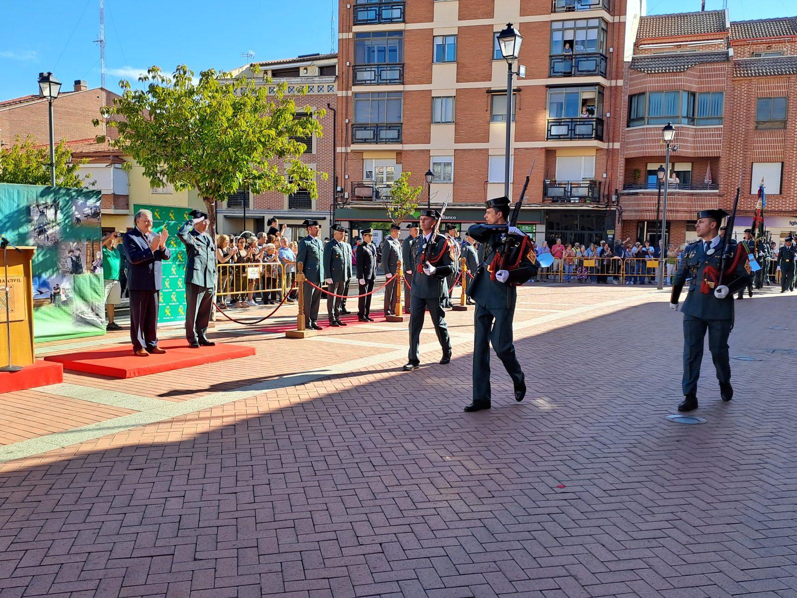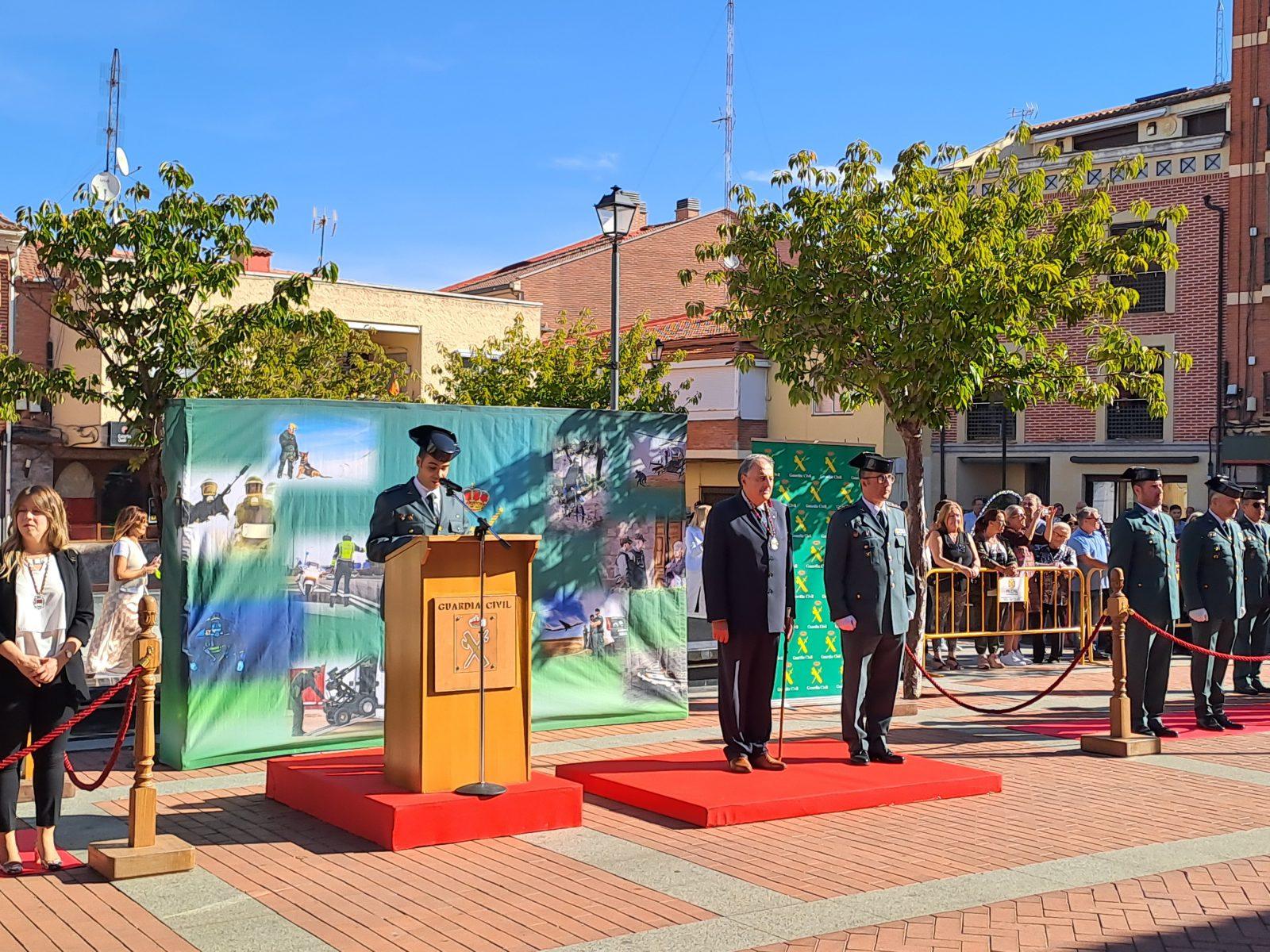 El Jefe de la Comandancia de Valladolid, el coronel Andrés Manuel Velarde Tazón, ha presidido el acto junto con el alcalde de Laguna de Duero, Avelino Álvarez. El acto ha comenzado con el pase de revista a la Sección de Honores que esperaba en formación por parte del Jefe de la Comandancia. Posteriormente se ha llevado a cabo el izado de bandera, que ha sido portada por dos guardias hasta el mástil colocado en la zona derecha de la plaza. Tras esto, tuvo lugar un desfile por delante de las autoridades. En él ha participado una sección de 15 miembros entre suboficiales, cabos y guardias, el guión de la Comandancia y el teniente de la sección. Además, han estado igualmente presentes dos vehículos conducidos por dos guardias.
