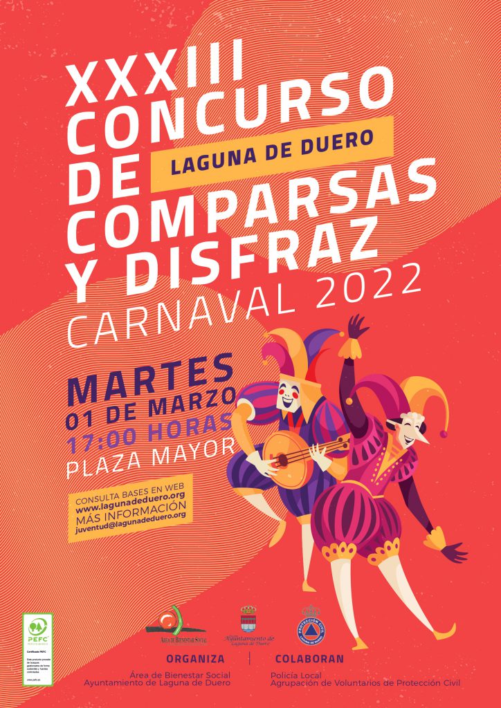 El Ayuntamiento de Laguna de Duero presenta las bases para concursar en el Carnaval 2022, la primera cita con los disfraces será el domingo 27 de febrero a las 12.00 horas con el Concurso Infantil en el que los laguneros más pequeños nos deleitarán con sus disfraces en la pasarela musical en el CEIP “La Nava”.