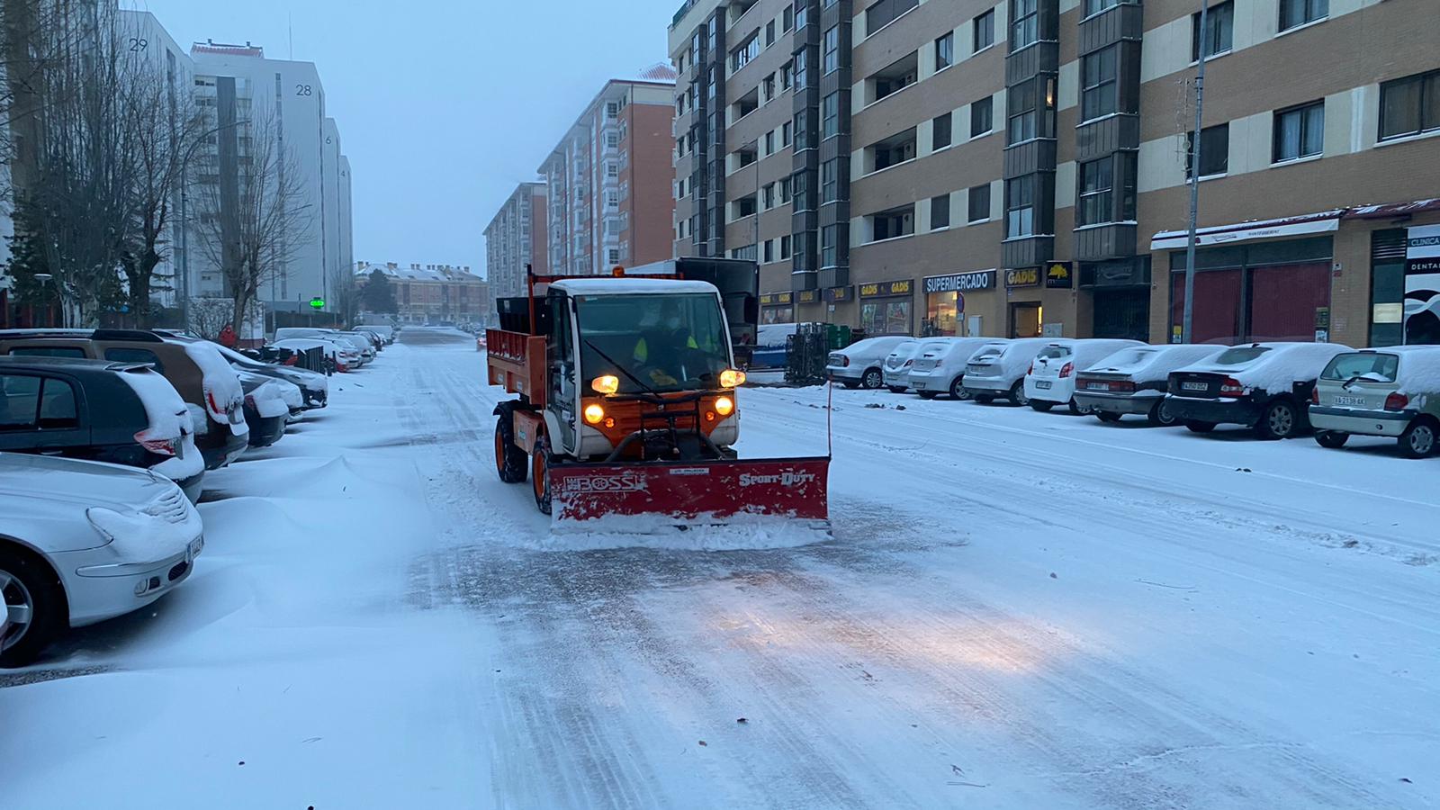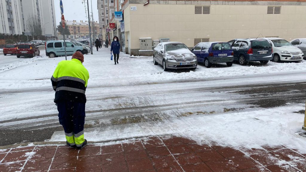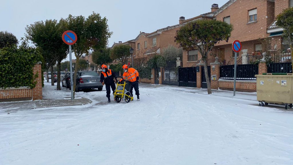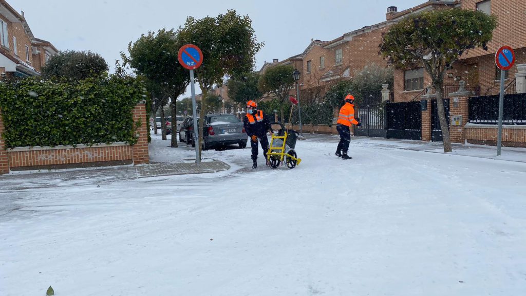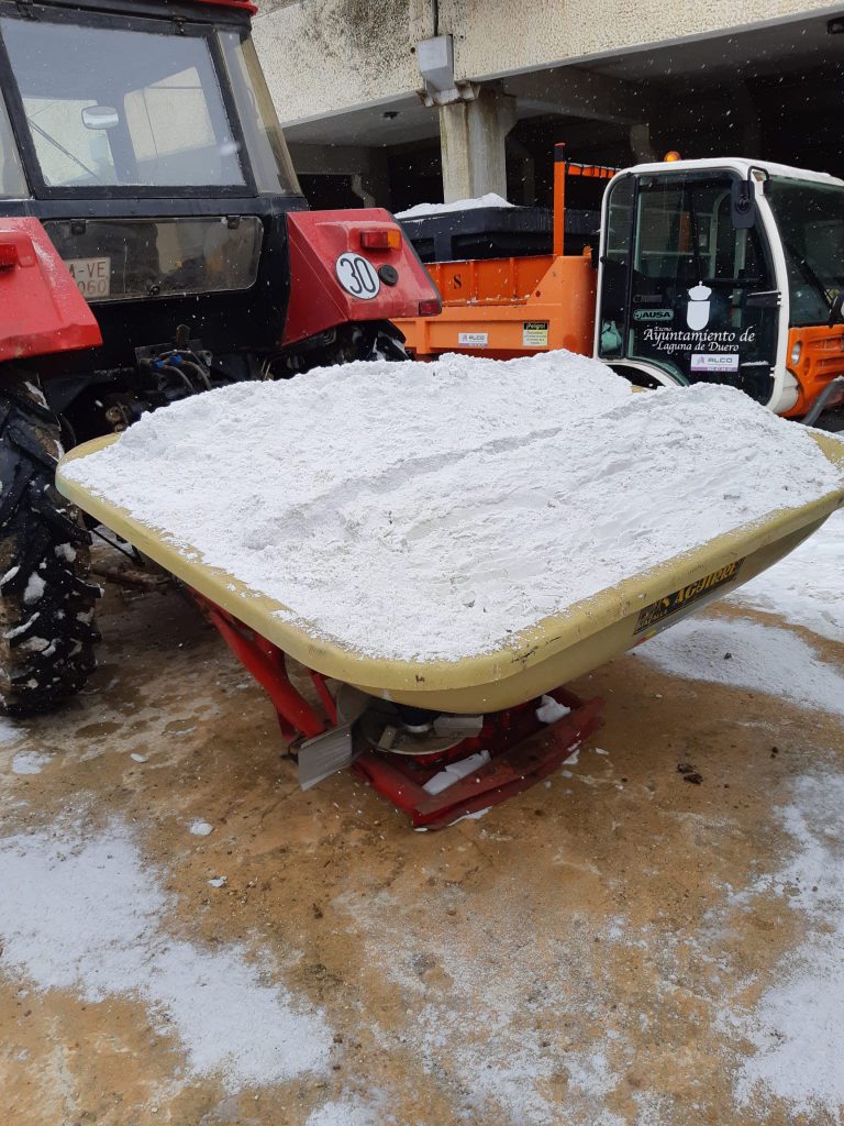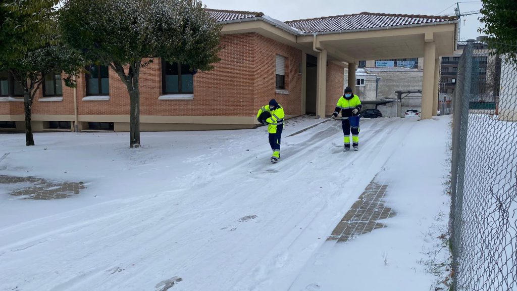 Operarios del Consistorio,de la Agrupación de Protección Civil y Labradores ,recorren las calles de Laguna de Duero ,depositando sal y retirando la nieve para facilitar el tránsito y evitar resbalones.