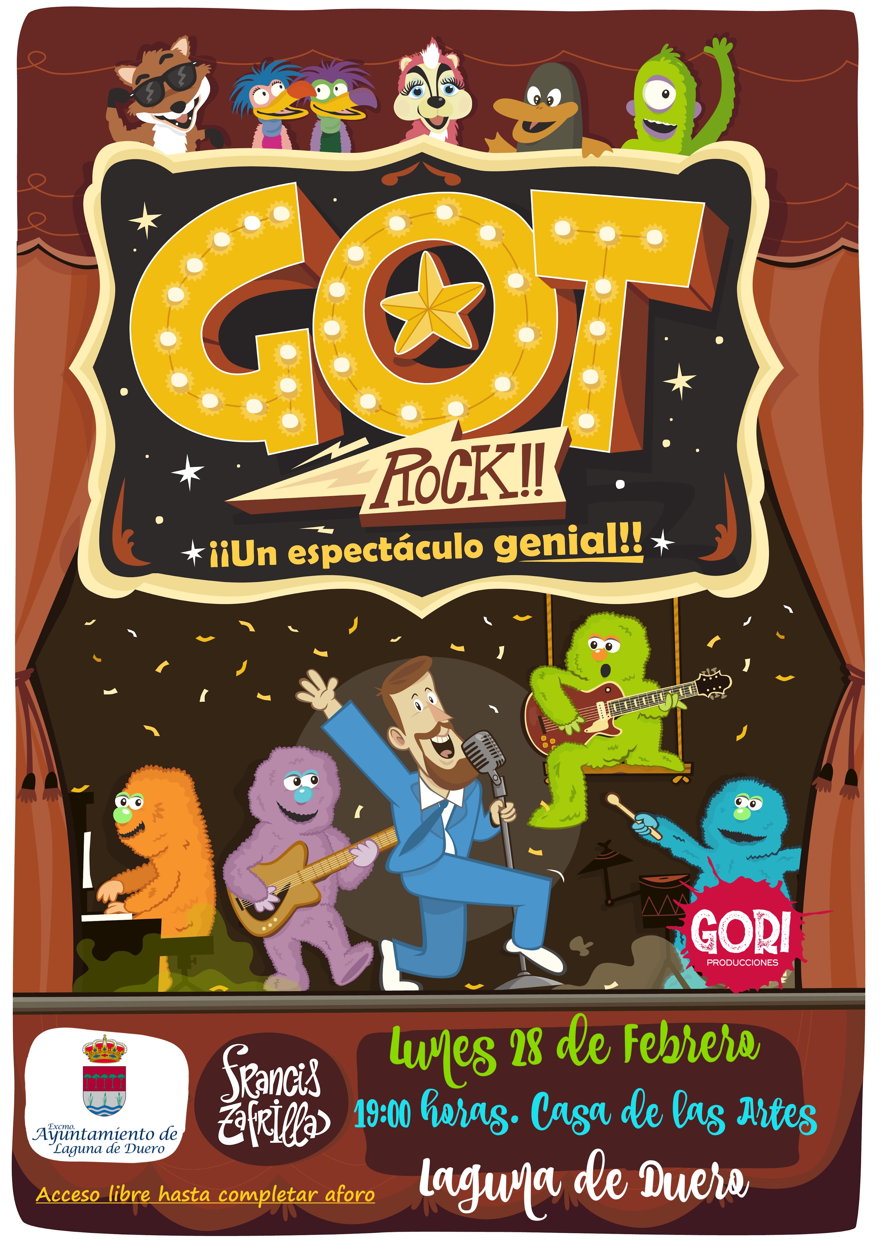 El Ayuntamiento de Laguna de Duero desde la Concejalía del Área de Bienestar Social presenta “Got Rock” una representación dirigida a los más pequeños del municipio. Una actividad que mezcla el humor y la música dentro, siendo parte del amplio programa de Carnaval 2022. Uno a uno los participantes de un fantástico concurso de talentos cobran vida y pasan por escena para transmitir sus sentimientos, historias y emociones por medio de sus canciones. Darán lo mejor de sí mismos y arrasarán en el escenario con su personalidad y su voz cantando en directo y animando al público para que lo haga con ellos.