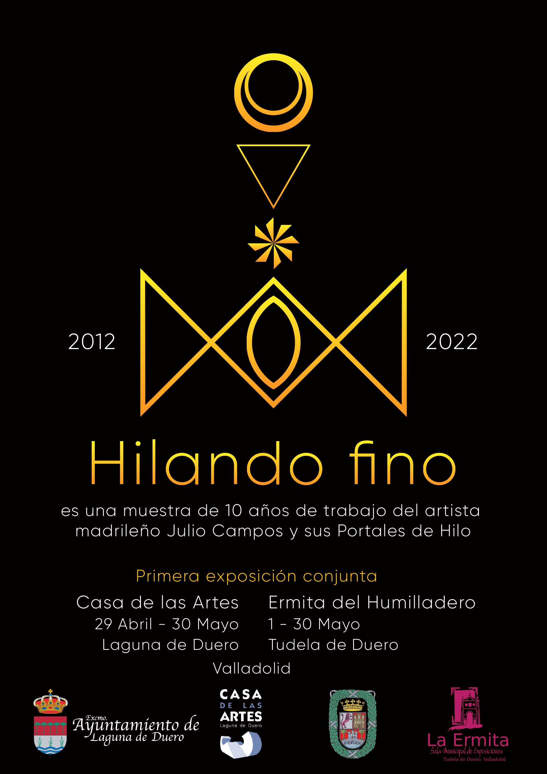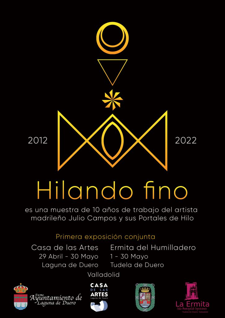 El Ayuntamiento de Laguna de Duero desde la Concejalía de Cultura, presenta la exposición “Hilando fino” una muestra que es el resultado de 10 años de trabajo del artista madrileño Julio Campos en donde la artesanía junto con las nuevas tecnologías y las complejas realidades que nos enfrentamos, han configurado lo que hoy se muestra en esta primera exposición conjunta de la Casa de las Artes de Laguna de Duero, del 29 Abril al 30 Mayo y la Ermita del Humilladero de Tudela de Duero, del 1 al 30 Mayo.