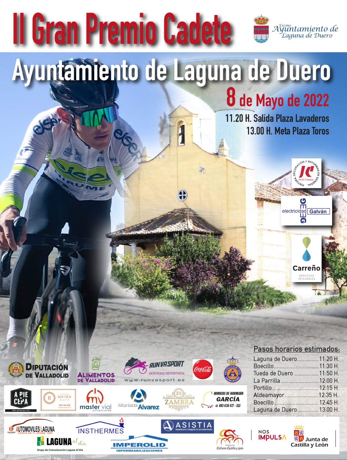 El Ayuntamiento de Laguna de Duero a través de la Concejalía de Festejos y Deportes, celebra el próximo domingo 8 de mayo el II Gran Premio Ciclista Laguna de Duero, una carrera dirigida a Clubes Federados a nivel nacional.