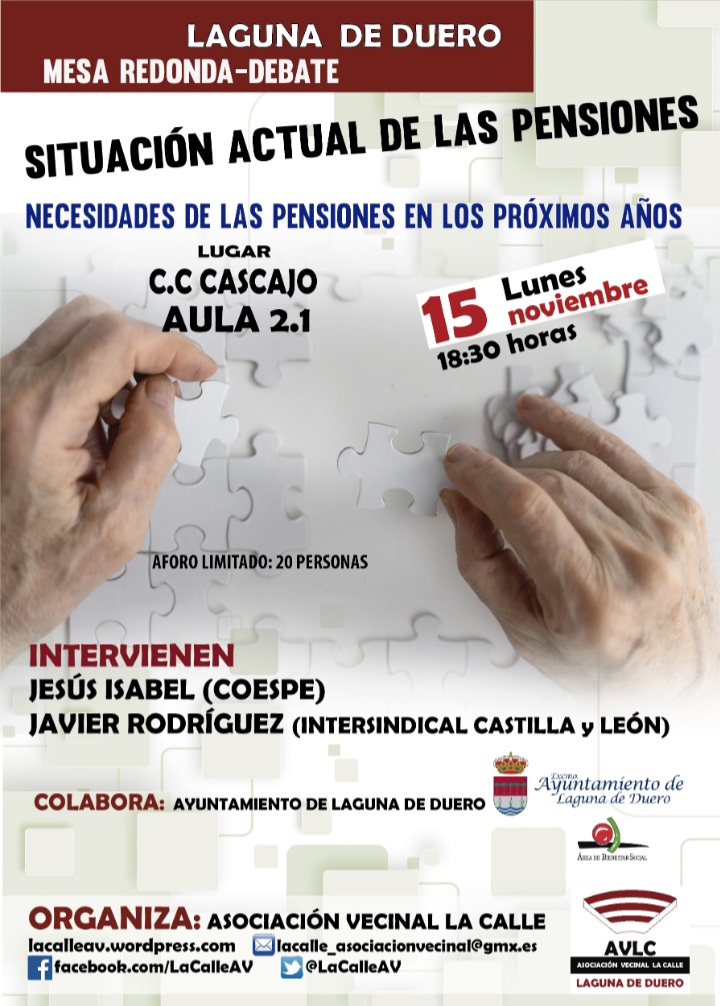 - La reunión para dialogar sobre las pensiones será el próximo lunes 15 de noviembre a las 18:30 Horas en el C.C Cascajo (Aula 2.1).