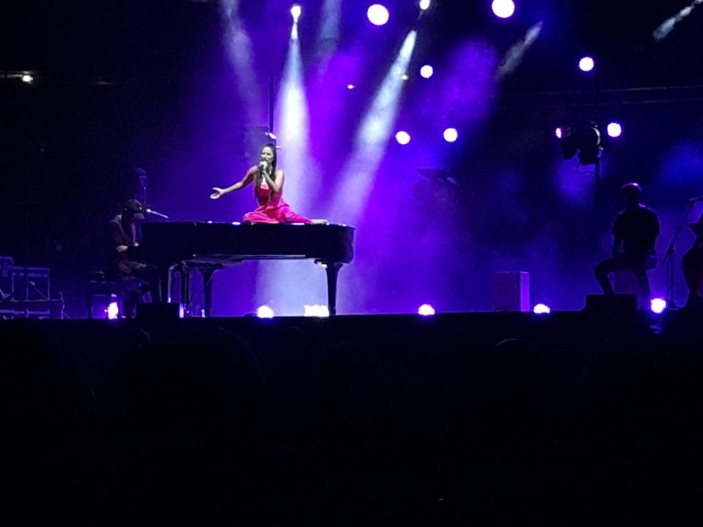 El colofón del fin de semana musical en este ciclo de conciertos “Noches en la Plaza”, llegó con la maravillosa y potente voz de la cordobesa India Martínez , que deleitó a todos los presentes con temas de su nuevo disco “Palmeras” además de temas anteriores como Todo no es casualidad, Contigo o La Gitana. Tras el cambio de vestuario, se descalzó y subió al piano para interpretar de manera magistral, entre otras canciones, Un ramito de violetas y Hola mi amor.