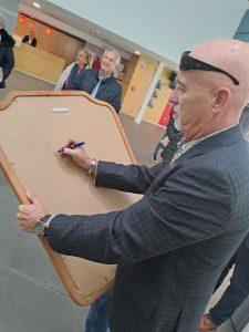 Su autor, Juan Carlos González, amigo personal del artista, ha querido inmortalizarle en un retrato realizado a bolígrafo y que ha cedido al municipio con la condición de que se expusiera en algún lugar visible.
