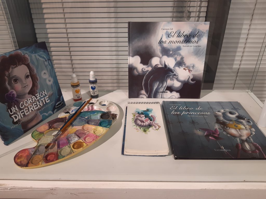 Desde el 5 hasta el 21 de noviembre podremos disfrutar de ésta apasionante exposición ubicada en la Casa de las Artes,una muestra para disfrutar del maravilloso mundo de la ilustración, del colorido, de las experiencias vividas ,plasmadas en un mundo de fantasía.”Me encantan trabajar con todo tipo de materiales sobretodo en acuarela y tinta china,los tonos azulados y la fantasía” recalca la autora.