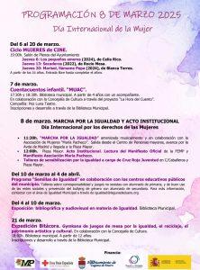 Bajo una propuesta de trabajo en red entre diversos agentes sociales y culturales del municipio, las diferentes propuestas y actos programados se llevarán a cabo a lo largo del mes de marzo, con el siguiente programa: