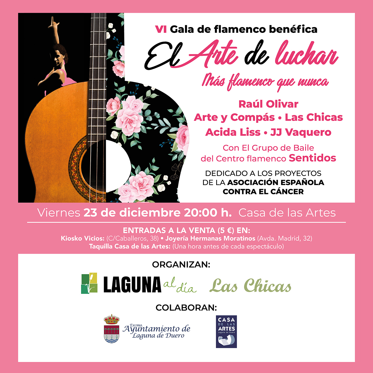 Laguna al Día y ‘Las Chicas’, organizadores de la VI Gala Benéfica ‘El Arte de Luchar’ –en colaboración con el Ayuntamiento de Laguna de Duero y la Casa de las Artes- han anunciado que la próxima edición de la Gala se celebrará el próximo viernes 23 de diciembre. El evento se celebrará a las 20:00 horas, en la Casa de las Artes, y próximamente se dará a conocer la fecha de lanzamiento de las entradas, las cuáles seguirán teniendo un precio de 5 euros y previsiblemente se pongan a la venta a partir de la semana del 21 de noviembre. Estas podrán ser adquiridas en los mismos puntos de venta que habitualmente (Joyería Hermanas Moratinos -Avenida de Madrid, 32-, kiosko Vicios -Calle Caballeros, 38- y la taquilla de la Casa de las Artes, una hora antes de cada espectáculo).