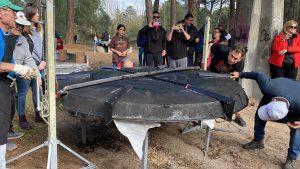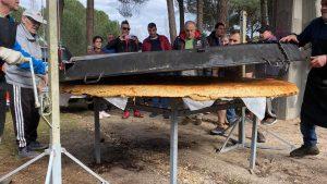 Un año más, el miércoles central de la Cuaresma, Laguna de Duero ha celebrado su tradicional Día de la Vieja. La principal protagonista siempre es la espectacular tortilla que el Ayuntamiento ha ofrecido a todos los vecinos y vecinas que se han acercado hasta el Área Recreativa “Los Valles”. Su receta, tan sorprendente como sus 2 metros de diámetro y sus 250 kilogramos de peso. Sus 1000 raciones estaban hechas de 1100 huevos, 160 kg de patatas, 15 kg de cebollas, 20 kg de jijas, 15 litros de aceite y 3 kg de sal. Todo ello cocinado durante horas por Jesús Martín Repiso, el encargado de poner el sabor a todos los guisos multitudinarios que se hacen en el municipio.