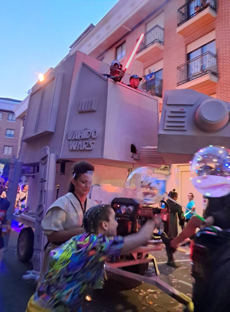 Tras ella, turno del primer edil, Avelino Álvarez, que apelo al respeto a las tradiciones y a la convivencia entre vecinos antes de dar una noticia que a muchos dejó con la boca abierta: los pregoneros no habían llegado a tiempo al pregón por haber tenido problemas a la vuelta de un viaje desde Valencia. El público, se empezó a impacientar entre pitos, y veinte segundos después, Samu, Enrique y Zoran aparecían cada uno en un balcón de la Casa Consistorial para poner el toque musical al pregón ante el asombro de los asistentes. Tras su pequeña actuación, vino el momento más emocionante de la tarde, las palabras de cada uno de estos tres componentes del grupo Benito Kamelas a todos los que se concentraban en la plaza. La euforia se desató con cada una de sus frases para dar paso al encendido del cochete que hacía saber a todos los habitantes del municipio que comenzaban las fiestas del 2025. Tras esto dio comienzo el tradicional desfile de peñas y carrozas que se alargó hasta casi entrada la noche con centenares de personas en la calle para disfrutarlo. Ahora, cientos de actividades programadas hasta el fin de los festejos el próximo día 9.
