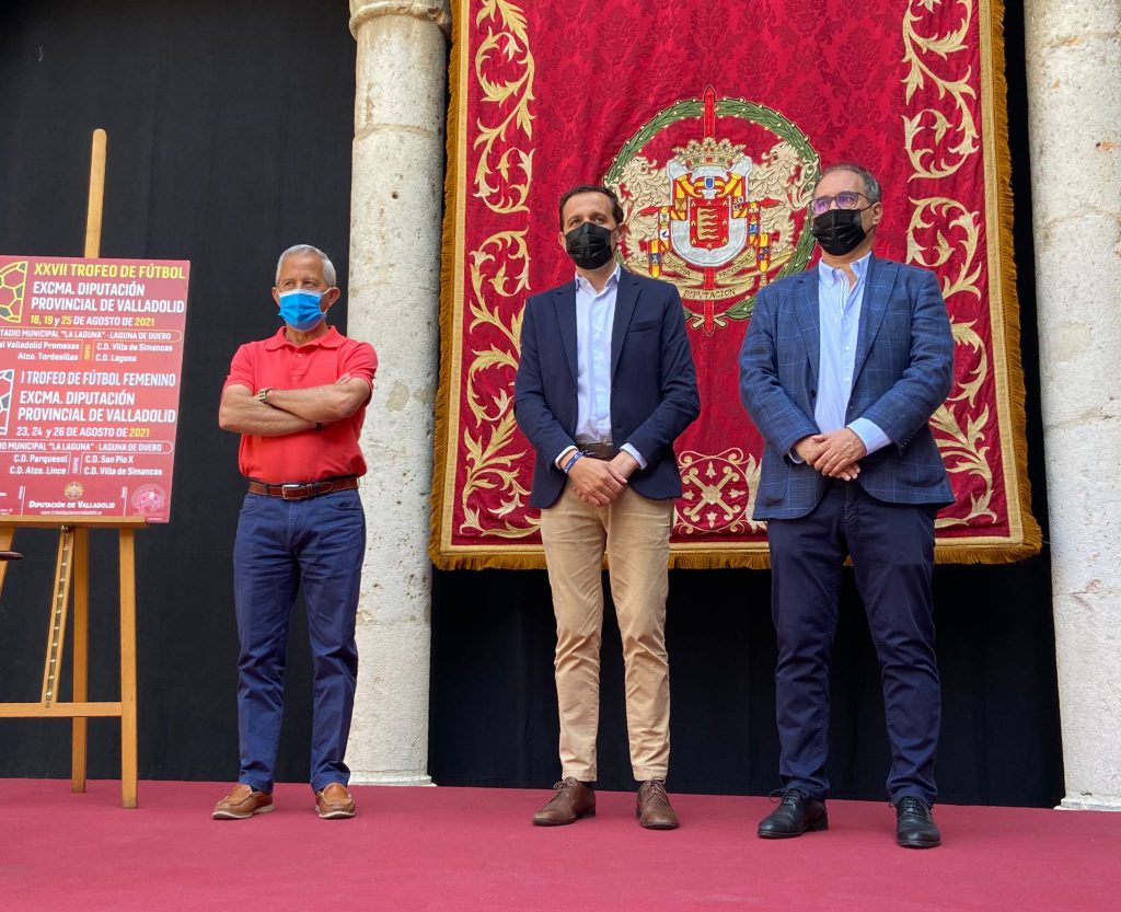 El Presidente de la Diputación, Conrado Íscar, el alcalde de Laguna de Duero, Román Rodríguez de Castro y el concejal de Deportes, Fernando Vara junto a diferentes representantes de otros Ayuntamientos estuvieron en la presentación del XXVII Trofeo de Fútbol, celebrada esta mañana.