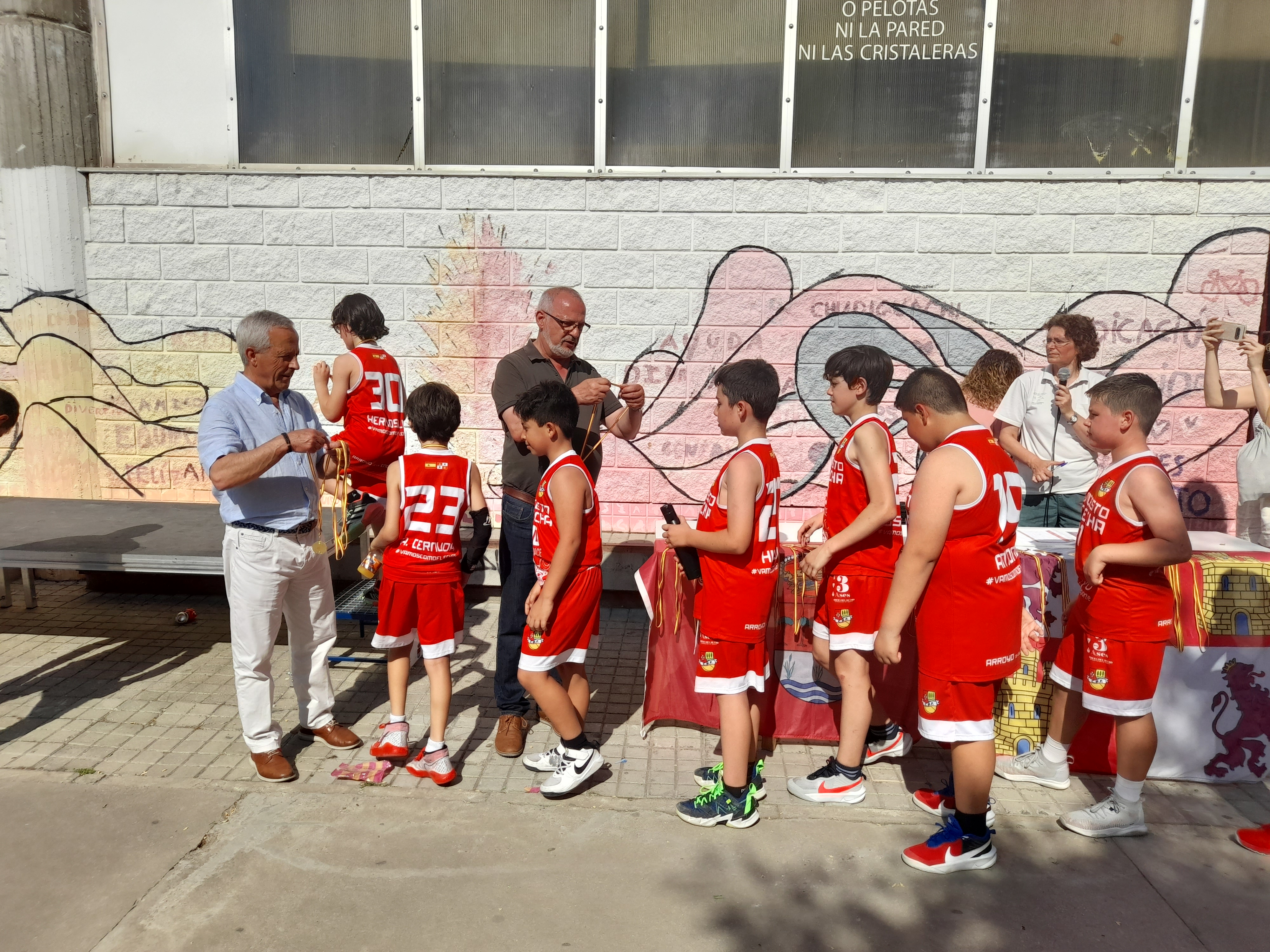 EL alcalde de Laguna de Duero, Román Rodríguez de Castro, el concejal de Deportes, Fernando Vara y el concejal de Régimen de Interior, Juan Carlos Rodríguez, entregaron las medallas a todos los participantes del Día del Baloncesto, organizado por el C.B Villa de Laguna.