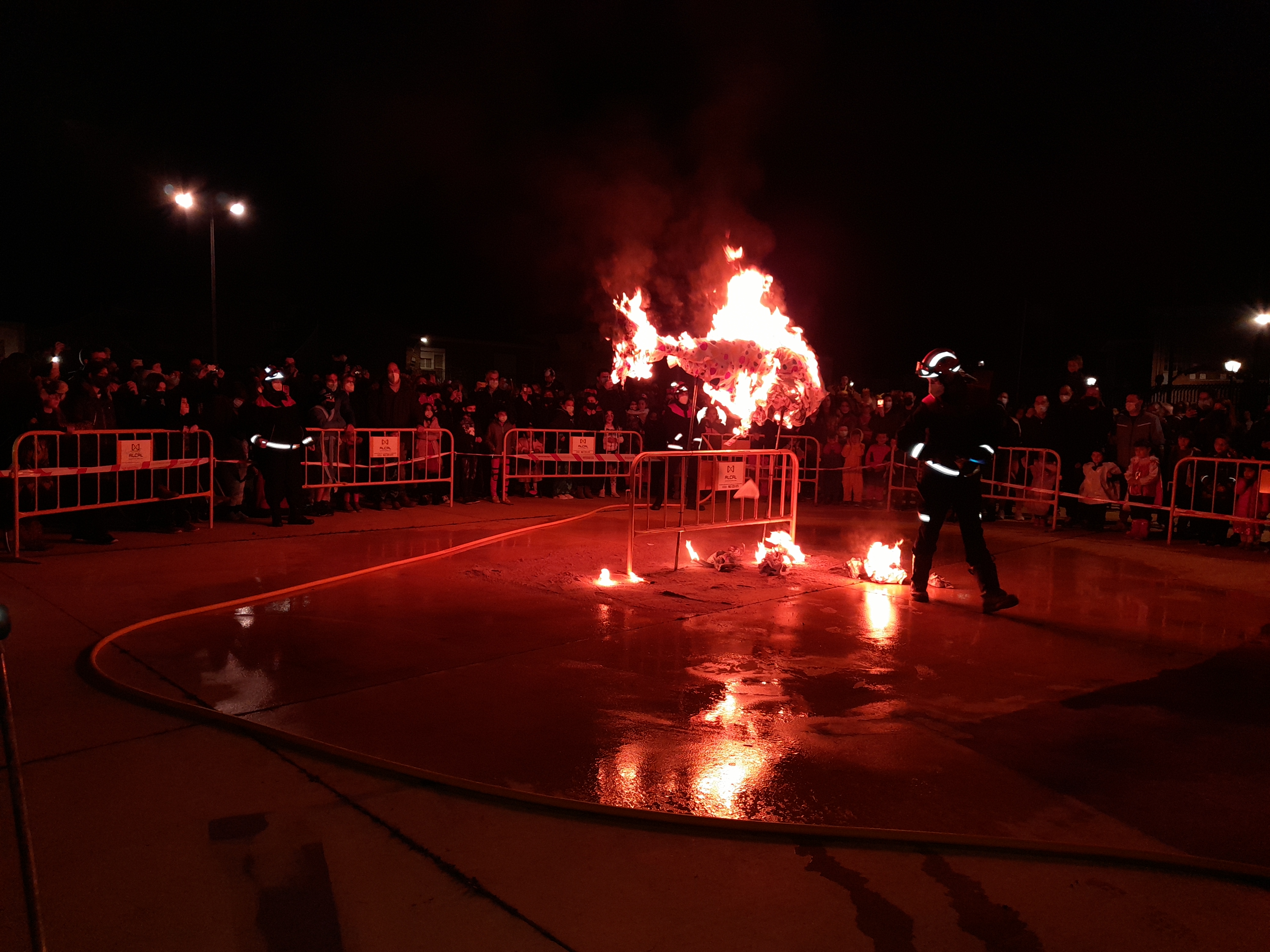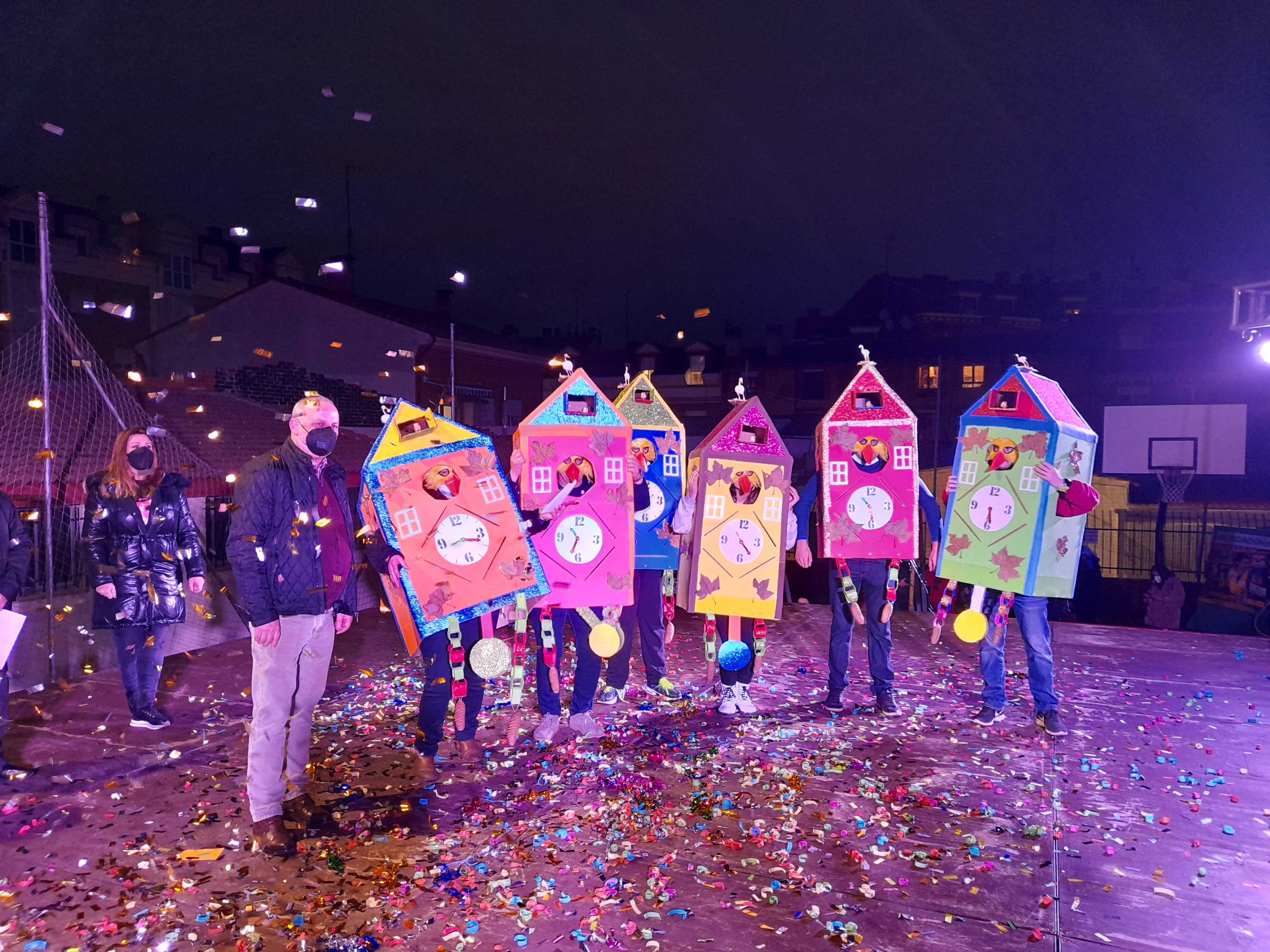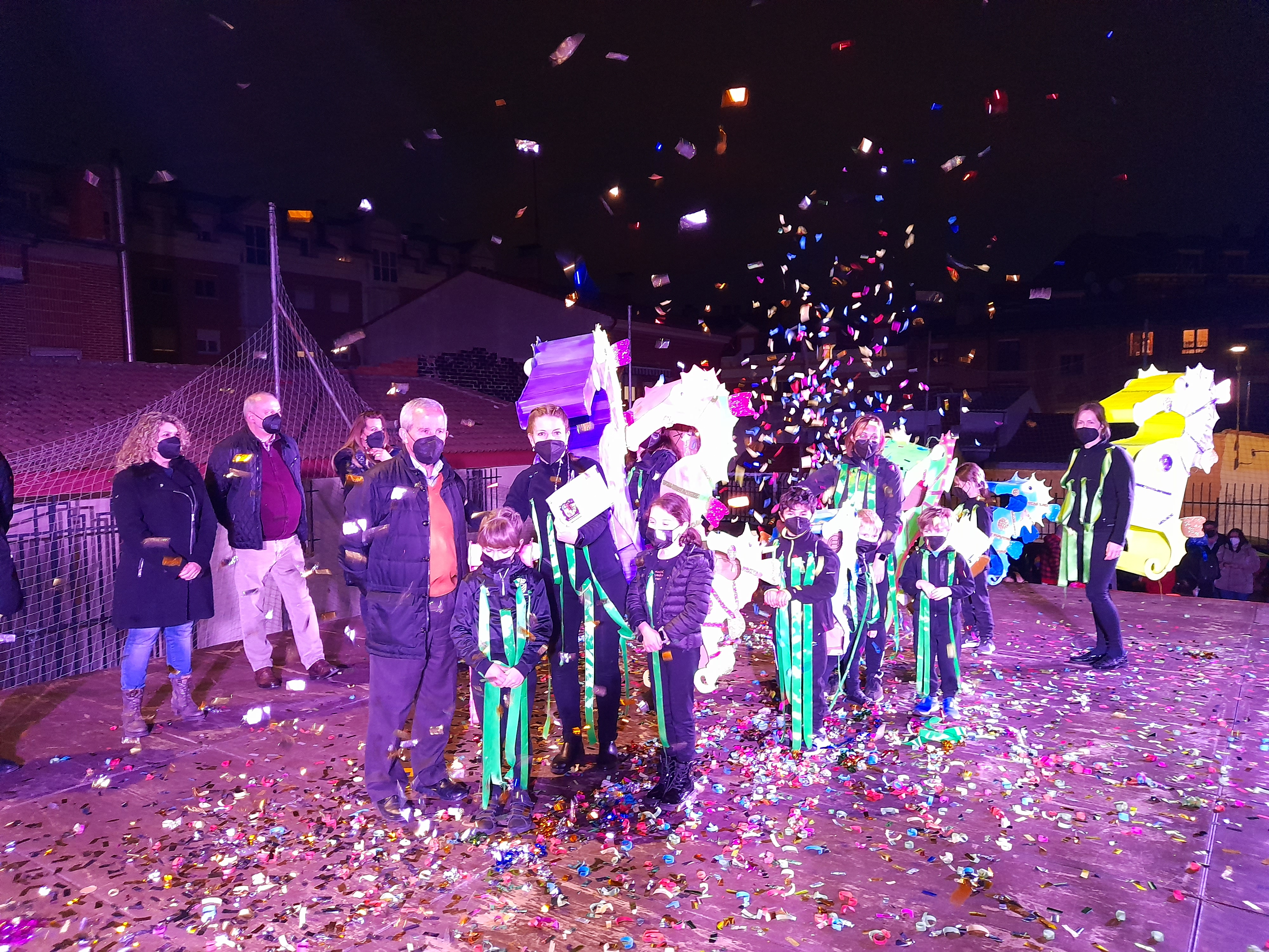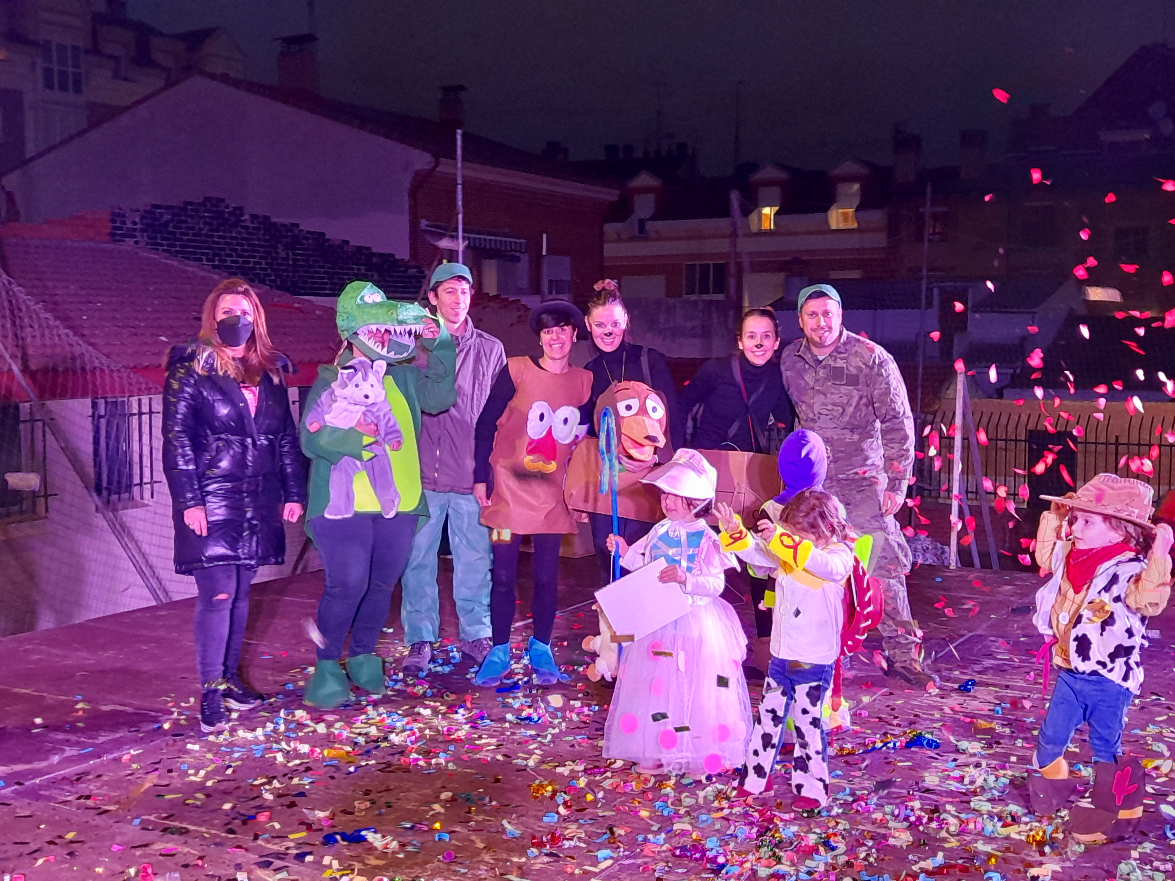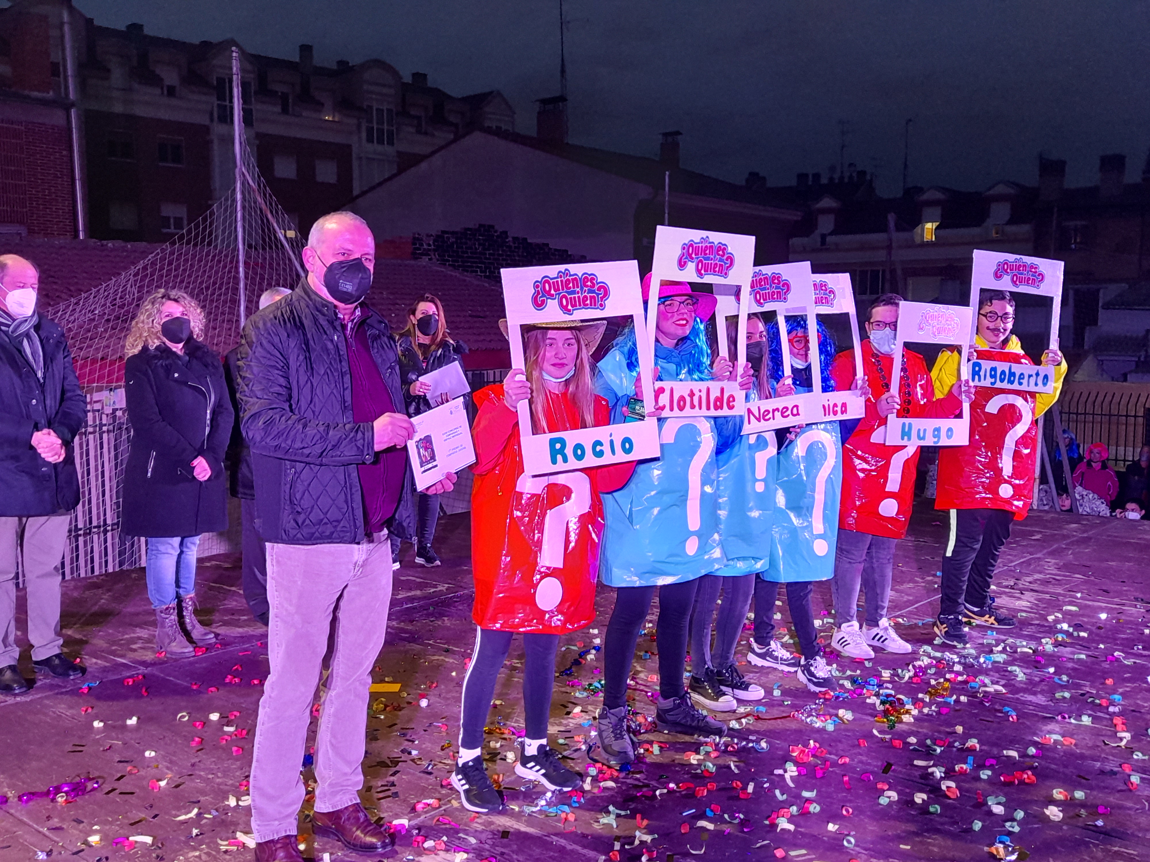 El primer premio individual -dotado con 150 euros- fue para la propuesta ‘Gárgolas’, realizada con papel de periódico entre otros elementos, mientras que el segundo -con 75 euros- fue a parar a ‘Mercadoña’, un guiño a la cadena de supermercados. Además, el premio al disfraz en pareja -dotado con 100 euros- fue para ‘Espera sentado Carlos’, una homenaje a la monarquía británica. Tras la entrega de premios, se procedió a la tradicional quema de la sardina.
