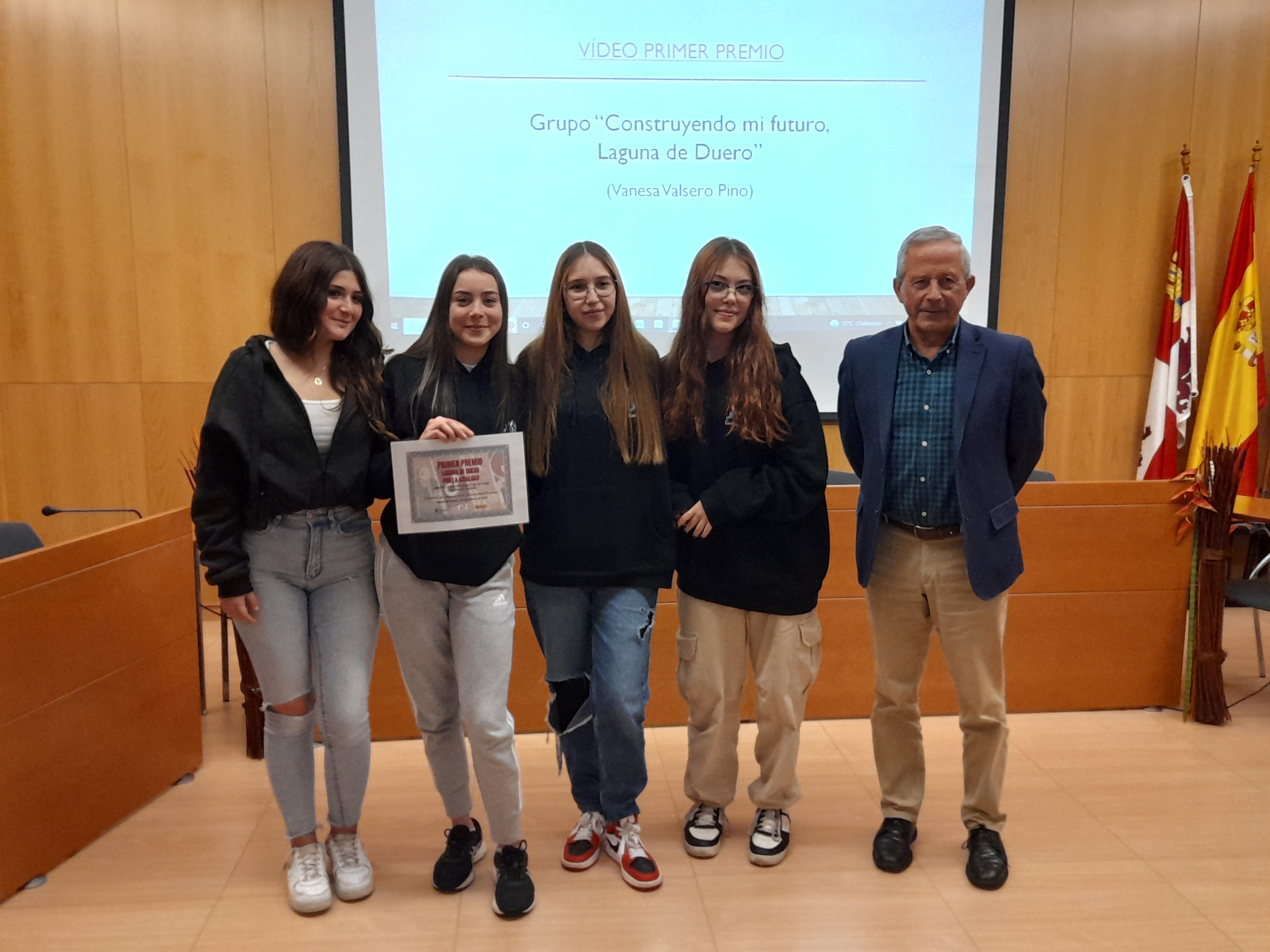 El alcalde de Laguna de Duero, Román Rodríguez de Castro entregó el primer premio, dotado con 200 euros, al grupo de estudiantes ‘Construyendo mi futuro’, las cuáles visibilizaron, a través de su vídeo, el problema de las relaciones tóxica. Las ganadoras, además, optarán a los premios nacionales de este concurso, pudiendo optar a un galardón dotado con 2.400 euros.