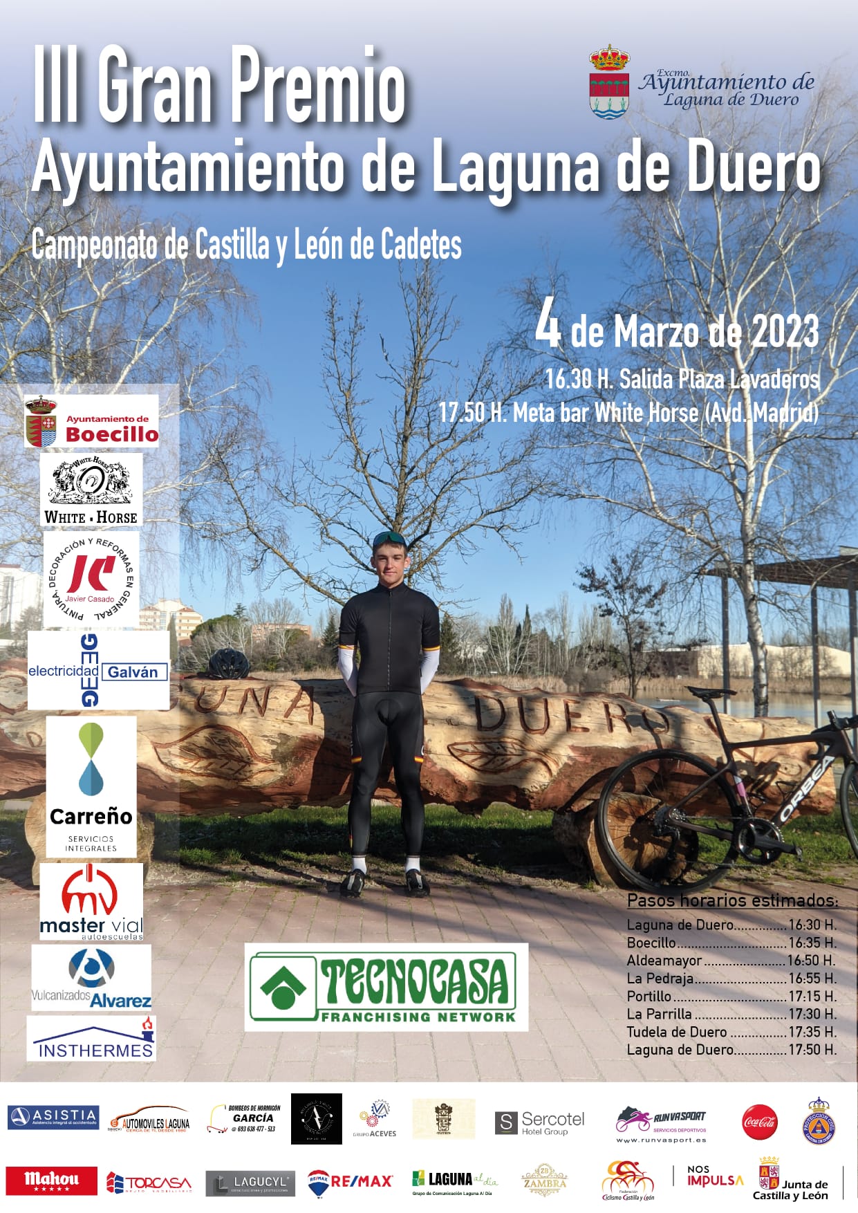 El Ayuntamiento de Laguna de Duero y la Concejalía de Deporte celebrará el próximo sábado 4 de marzo el III Gran Premio Ciclista, Campeonato de Castilla y León de Cadetes una carrera dirigida a Clubes Federados a nivel nacional.