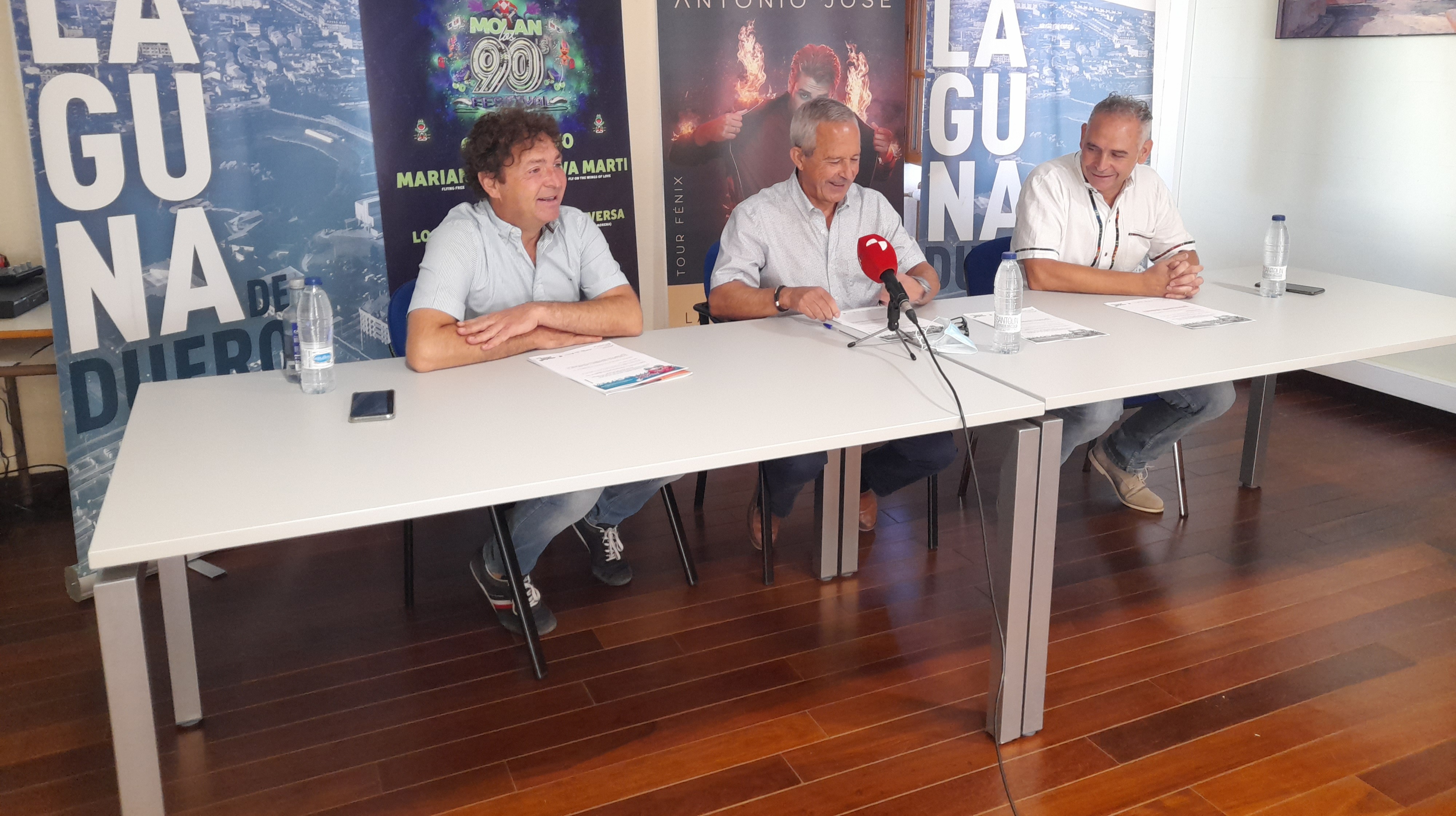 El alcalde de Laguna de Duero, Román Rodríguez de Castro, el concejal de Festejos, Isidro Pérez , Juanjo Rodríguez, de Pandora Producciones y Universo Group presentaron durante la mañana de hoy, el ciclo musical ‘Noches en la Plaza de Laguna de Duero’ con dos conciertos inéditos y exclusivos en Castilla y León.